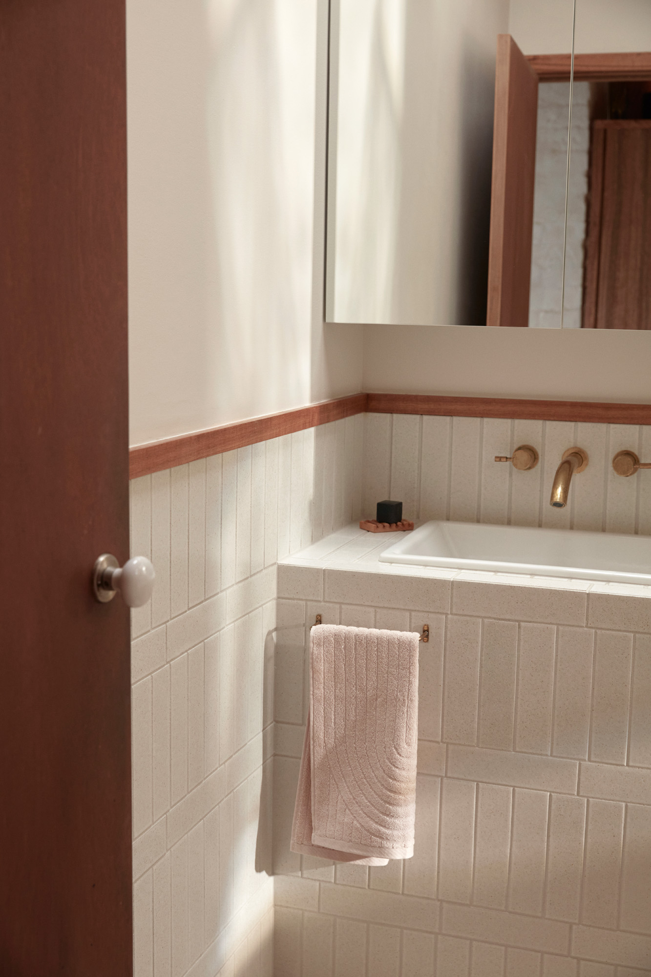 AF: We had actually contacted Sean and Jess to do an interior shoot for us, and, when workshopping potential locations, we suggested an image we’d seen on Instagram of the Fisher House bathroom. Sean responded, “That’s our house”, so we didn’t look any further.