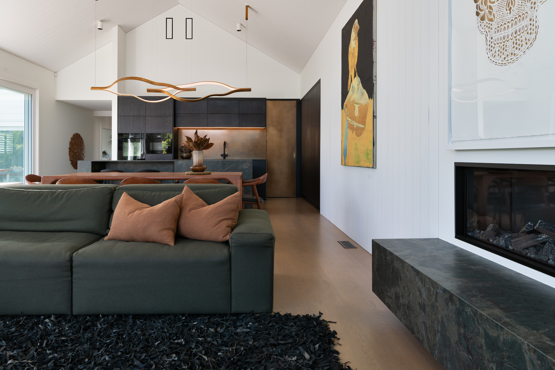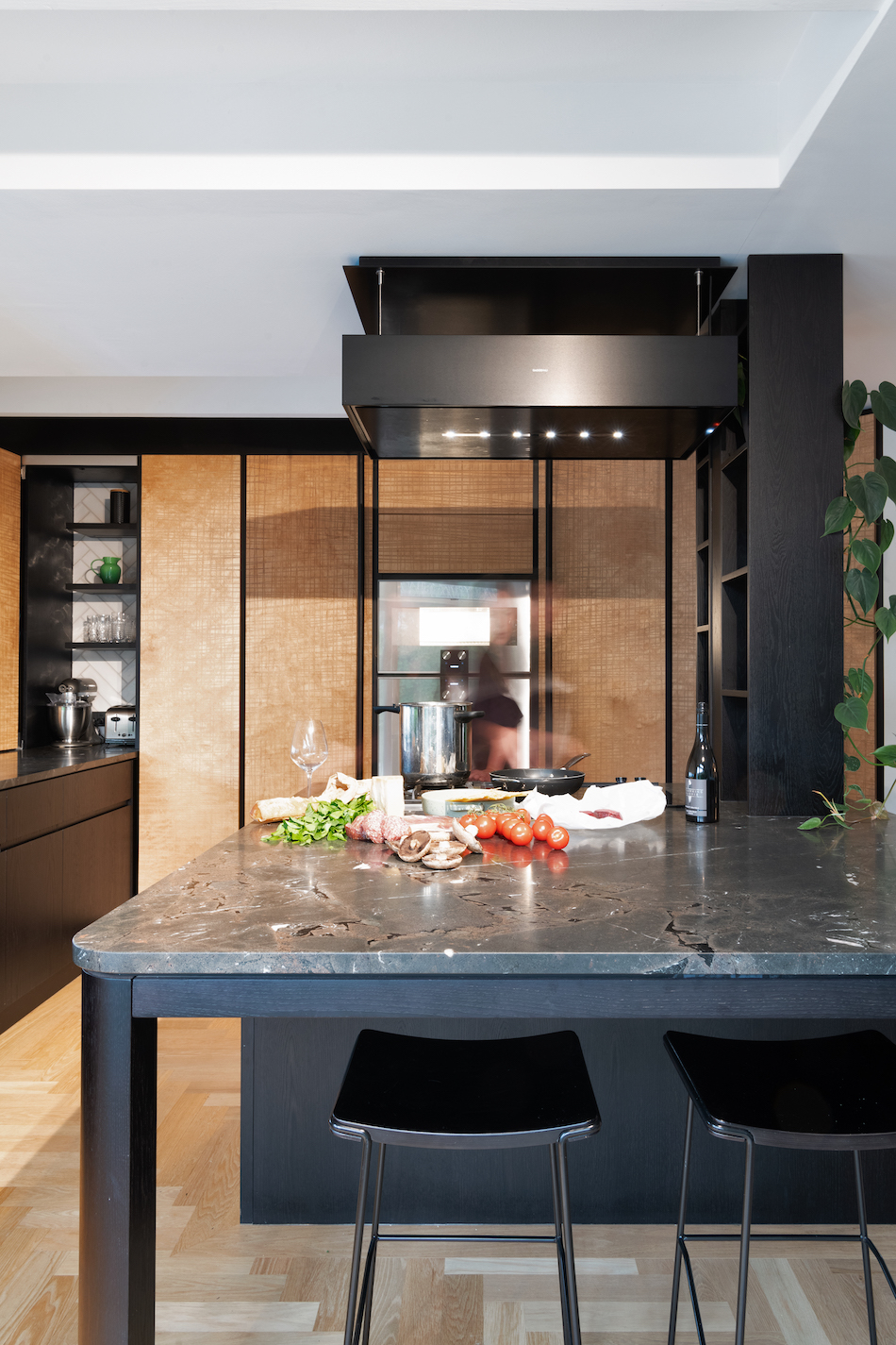 “The client had a love affair with Gaggenau appliances and wanted to incorporate a rangehood that was the first of its kind in New Zealand — and I believe is still the only one used here to date. It’s an amazing piece of technology that can be adjusted via a system of wires to any height. Parquet flooring was also determined from the outset.”