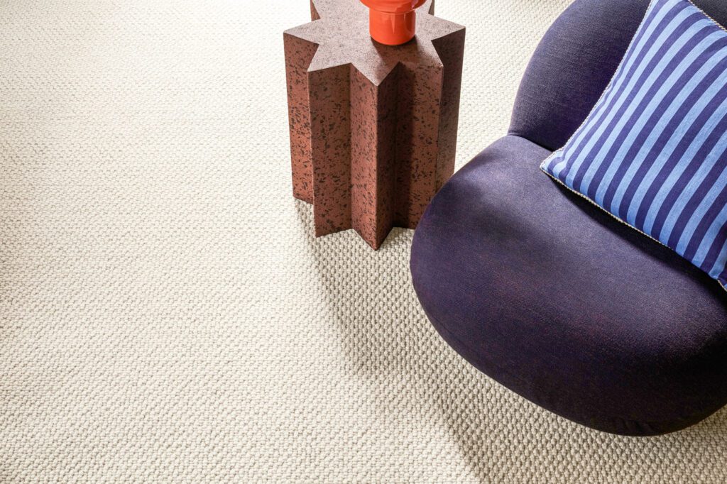 In the living room, materiality sets the tone. Underfoot, Feltex carpet from the Salisbury Wool Collection in Wiltshire 502 provides a warm, textural foundation — a natural wool surface that brings softness and depth while gently grounding the scheme. Its refined, organic handle anchors the room’s more expressive gestures, allowing colour to unfold with confidence.