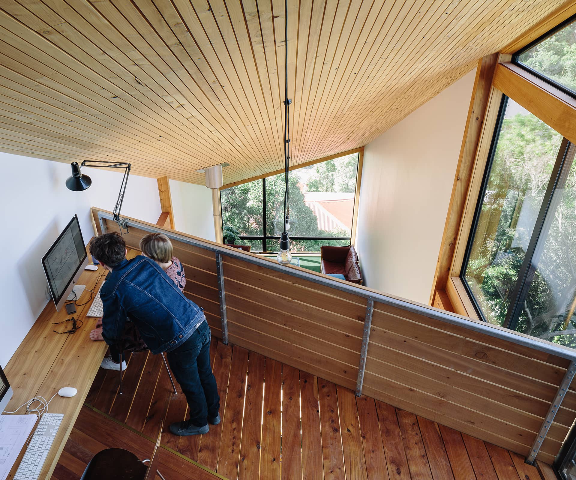 Ben Mitchell-Anyon: The site has a lot of constraints – it’s quite steep and there were a lot of trees we wanted to keep. It can be particularly difficult if you have four neighbours and a small piece of land. The levels are all designed to fit in with the sunlight and council regulations, which resulted in some cosy little spaces and some huge, lofty areas.