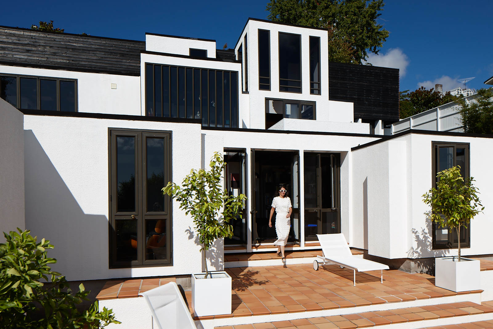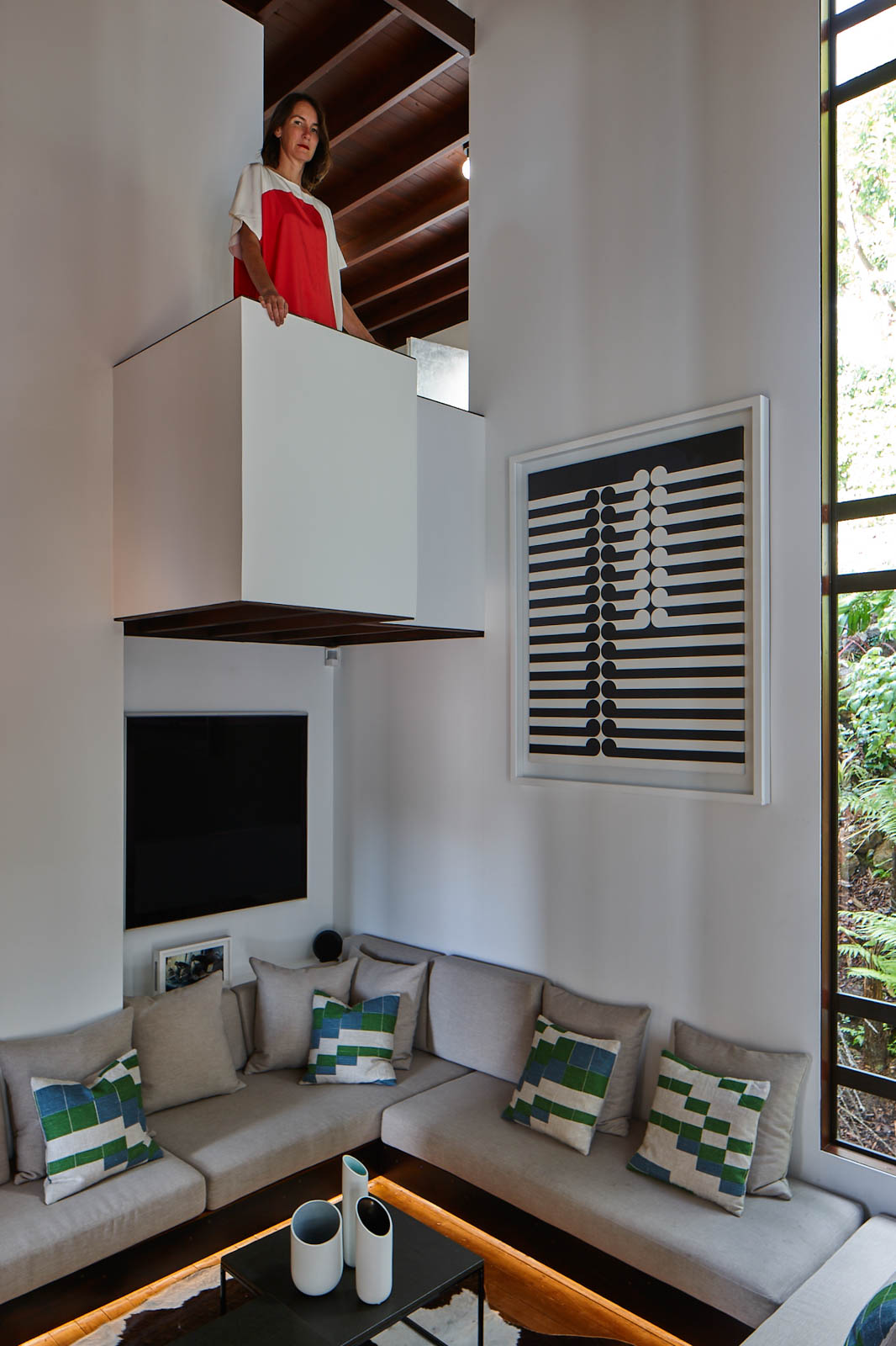 Owner Charlotte guides us down staircases and steps to the best view of the house, from the north-facing terrace at the back where it reveals its form: a series of glass-fronted boxes, like crystals tumbling down the hill, each one having a specific purpose.