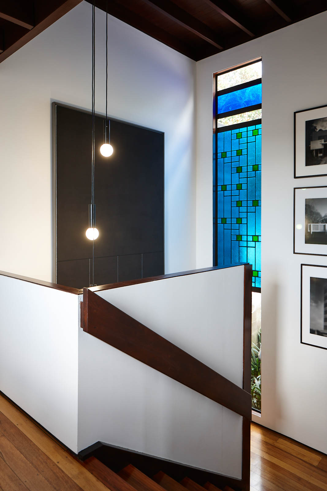 Most telling is a pendant leaded light hanging in the dining room. The house’s second owners were on the point of disposing of it. As it was an original Claude Megson design, a friend of theirs urged them to save it. As they didn’t want it, he offered to take it. Then one day his daughter told him her friend Charlotte had bought the Megson house … so after decades, the light, which had lain under his house, was returned, restored, and reinstated among the other treasures in the house.