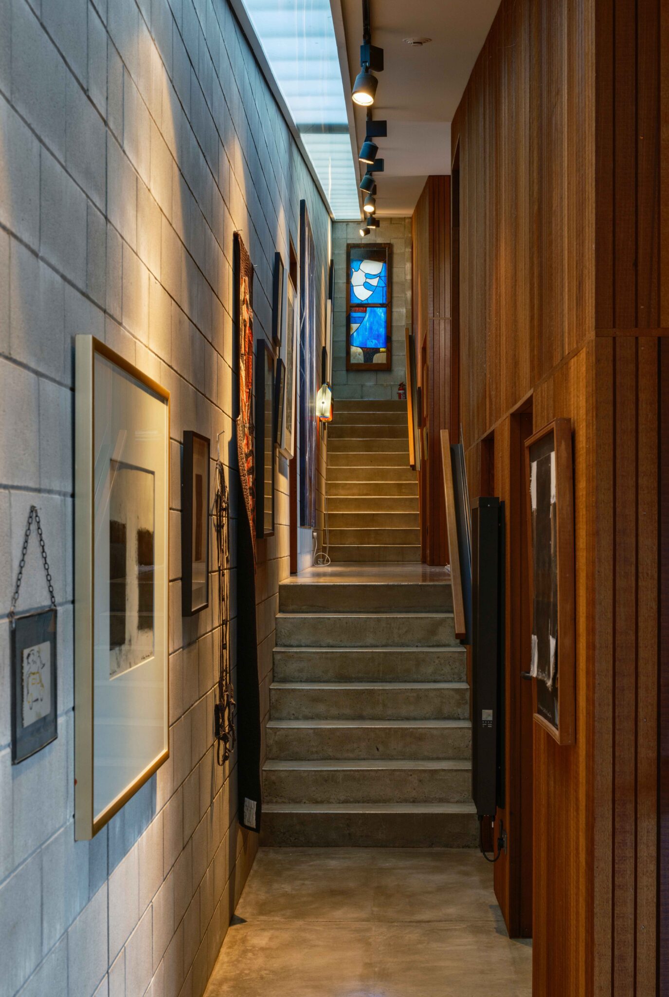 One can easily assume that part of this design’s longevity and success is the fact that the house was conceived as a personal object for clients with a very clear aesthetic. “This is quite a nostalgic house,” says Rich, “because it sort of holds elements of Andrea’s family home, which I visited a lot when we first met. There’s also that big collection of art that we’re honoured to be the custodians of. So there’s a really conscious thought to try and embed some of those memories of both of our upbringings into it.”