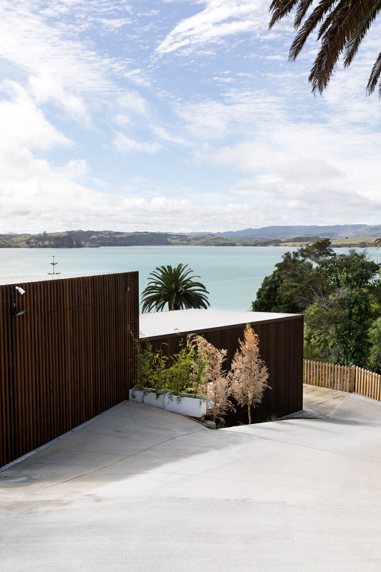 Nicola and Ben Lee: When we first walked down to Moonlight Bay with our young children, I knew we were in trouble! It’s a delightful little bay with gentle waves. The section was an overgrown side of a hill with difficult access even on foot. But the view looking out to Raglan Harbour was so stunning we knew we could do something with it.