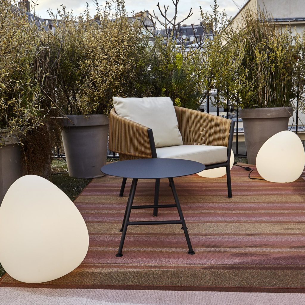 All poetry and soft lines, this sculptural shape, evocative of a stone, will extend summer evenings and illuminate the outdoor space effortlessly.