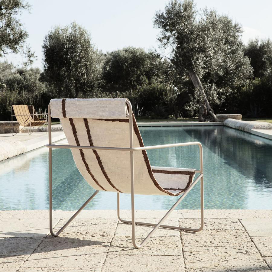 A modernist piece with a graceful profile for outdoor living, the Desert Lounge Chair is crafted from a tubular powder-coated steel frame, holding an interchangeable woven textile seat made from recycled plastic bottles.