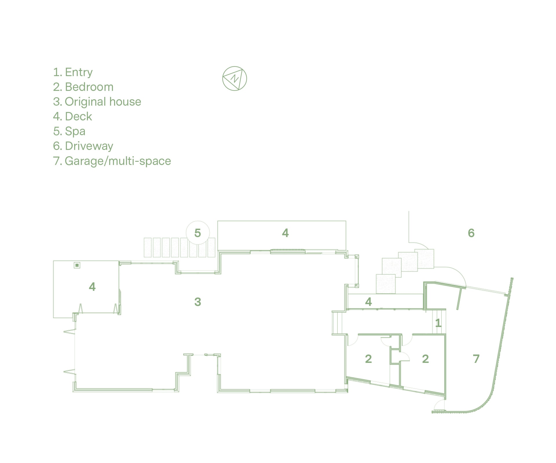 Tasked with creating an extension to this former 1950s Statehouse that could be used as a multi-room, but was not allowed to be a brick-and-tile double garage, architect Mark Frazerhurst looked to curves and corrugated fibreglass