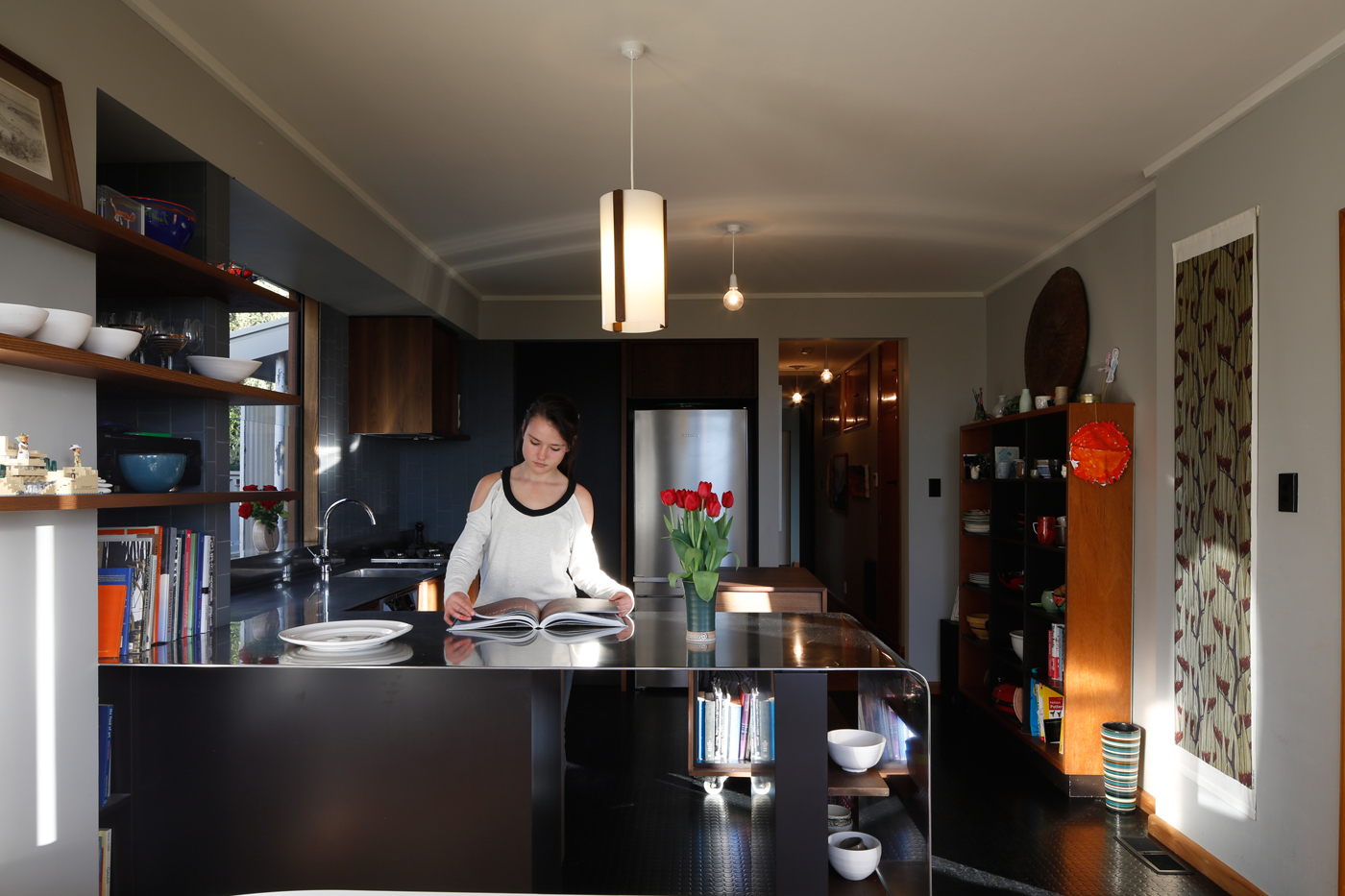 Funnily enough, when Jeremy and his wife Genevieve Morrissey bought the Alex Bowman-designed house in 2009, its bijou scale was part of the attraction, despite having three daughters – Bonita, Scarlett and Coco Plum (now 15, 12 and seven respectively). Bowman, who virtually single-handedly introduced international modernism to Nelson in the 1960s, had designed this one for a retired couple. He set the small, brick and slightly brutalist home against a neighbourhood of enormous heritage villas.