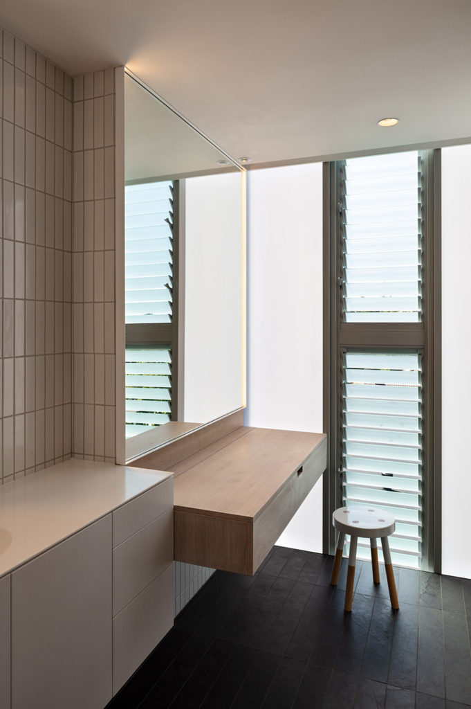 Tucked out of sight from the bedroom, in the ensuite and walk-in wardrobe, the clients have included an oversized make-up box disguised as a storage drawer. For the owners, who moved in the day before Christmas 2019, the experience of their first build has been rich in reward.