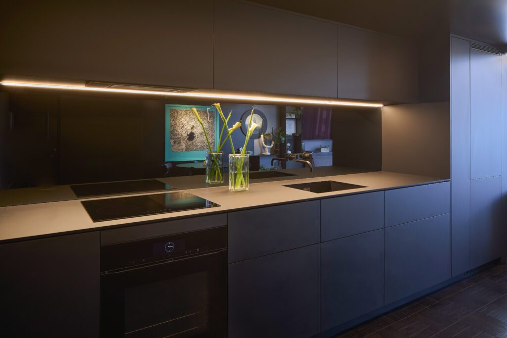 Kitchen joinery is finished in matt FENIX, a material Andrew praises for its “really beautiful, soft-to-the-touch feel”. Its seamlessness, paired with concealed brass corners and meticulous joinery, enhances what Altaire describes as the project’s ethos: “simple and perfect”.