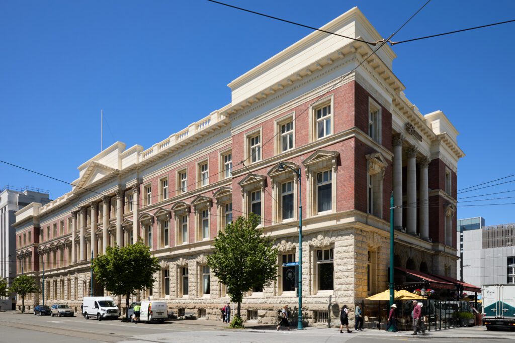 The city’s Old Government Building, designed by architect J.C. Maddison in the style of an Italian High Renaissance palazzo, was opened in 1913. “It has a massive box-like shape and a heavily rusticated stone base topped by walls with regularly placed windows, and a boldly modelled cornice,” according to Heritage New Zealand, which has rated it a Historic Place Category 1.