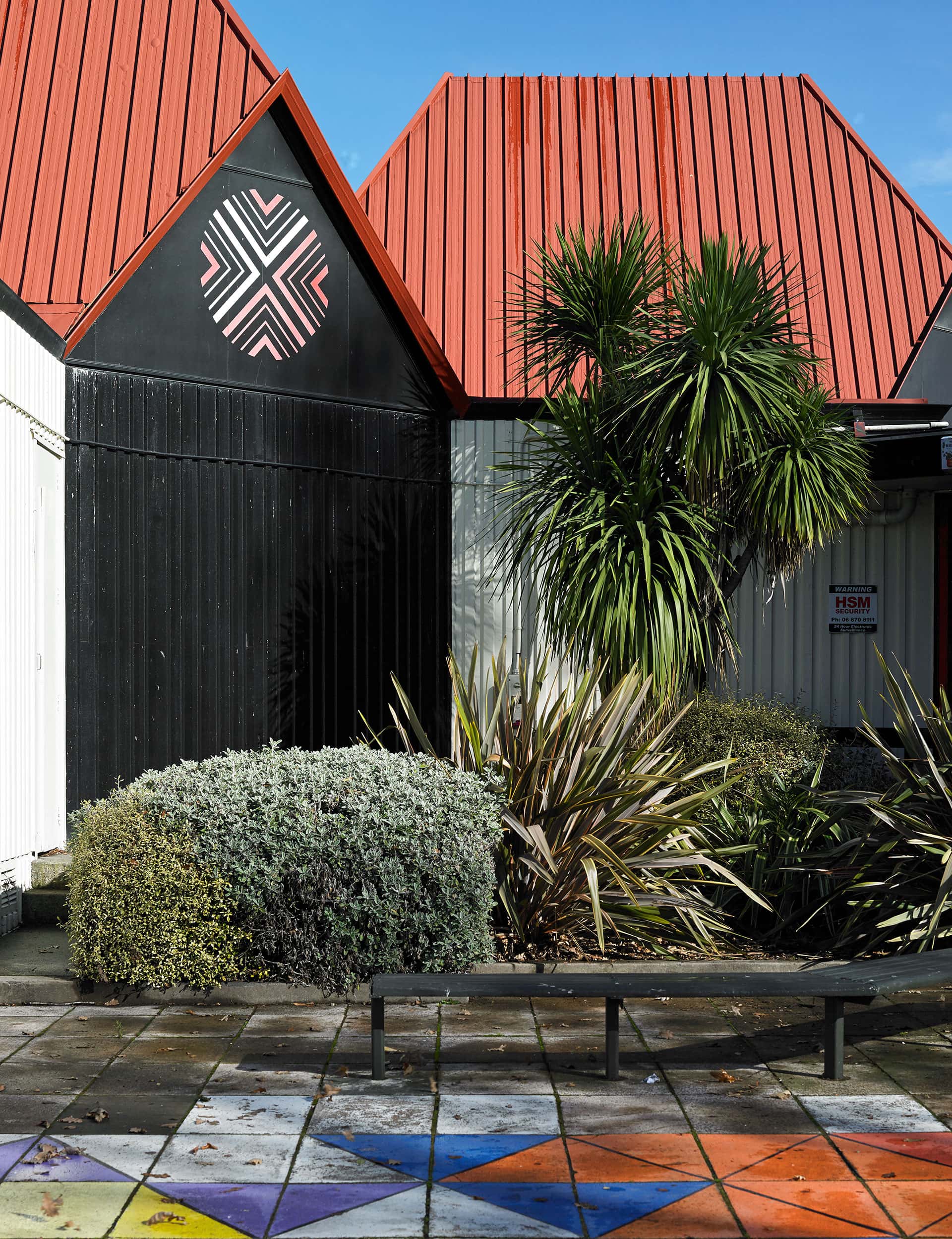 That’s on top of previous work by Jacob Scott – artist, educator and son of the renowned architect John Scott – who in 2008 devised the off-white, burnt red and black exterior scheme, which riffs on a classic tukutuku panel colour scheme.