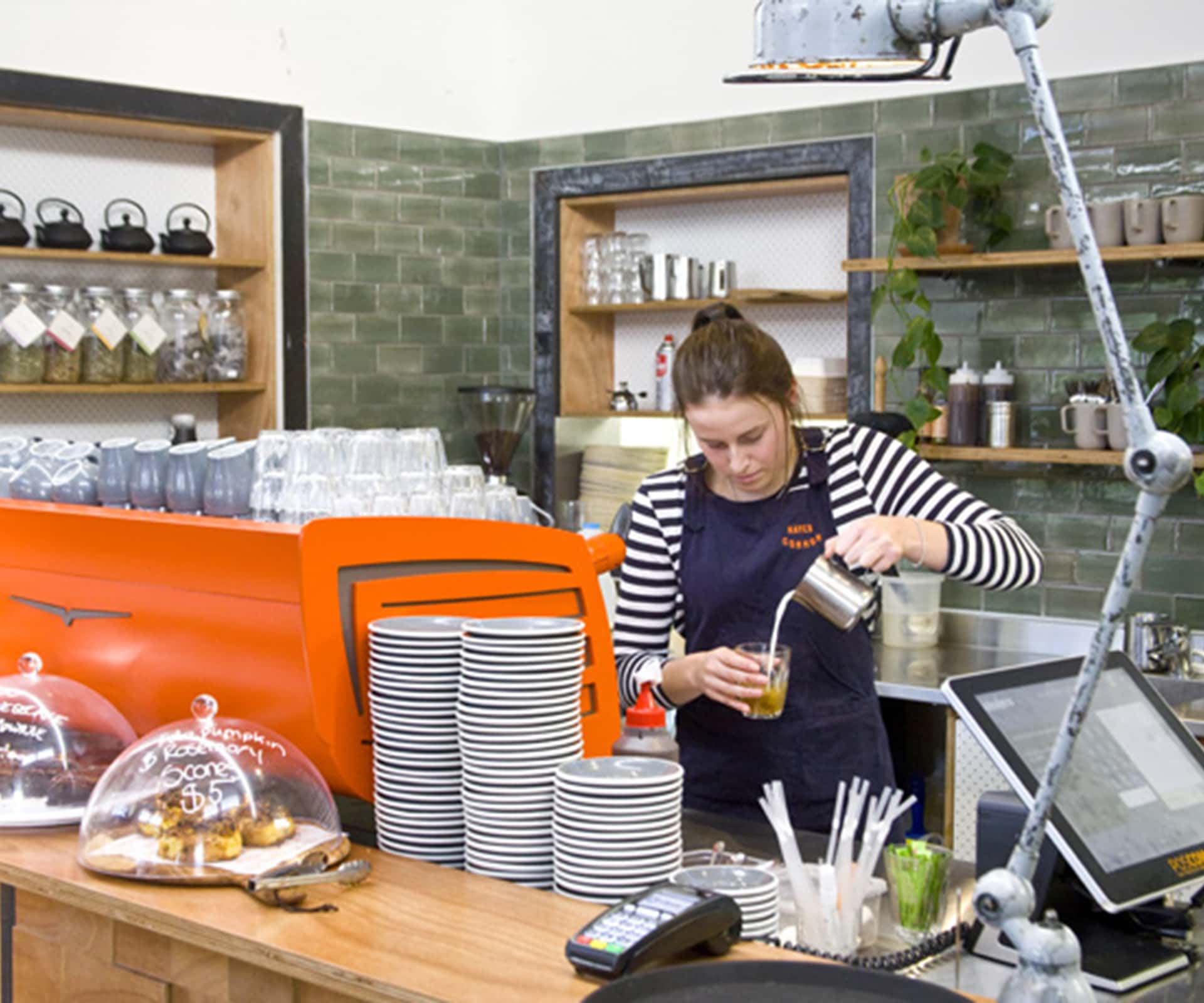 One of Hamilton’s favourite new eateries has entirely appropriate origins. The building now known as Hayes Common was constructed in 1945 and was home to a butcher, grocer and dairy. Since then it has been a studio for potter Tony Sly, and was more recently known as the Hydro Majestic Café. Now Lisa and Brent Quarrie, who also run the inner-city café River Kitchen, have re-imagined the space with designers from Material Creative. The space is complemented by identity design and branding from Alan Deare of Area Design. Bespoke details include handmade ceramics by Emily Siddell and hand-blown pendants by Monmouth Glass. The Quarries say they’ve had their eyes on the site for eight years.