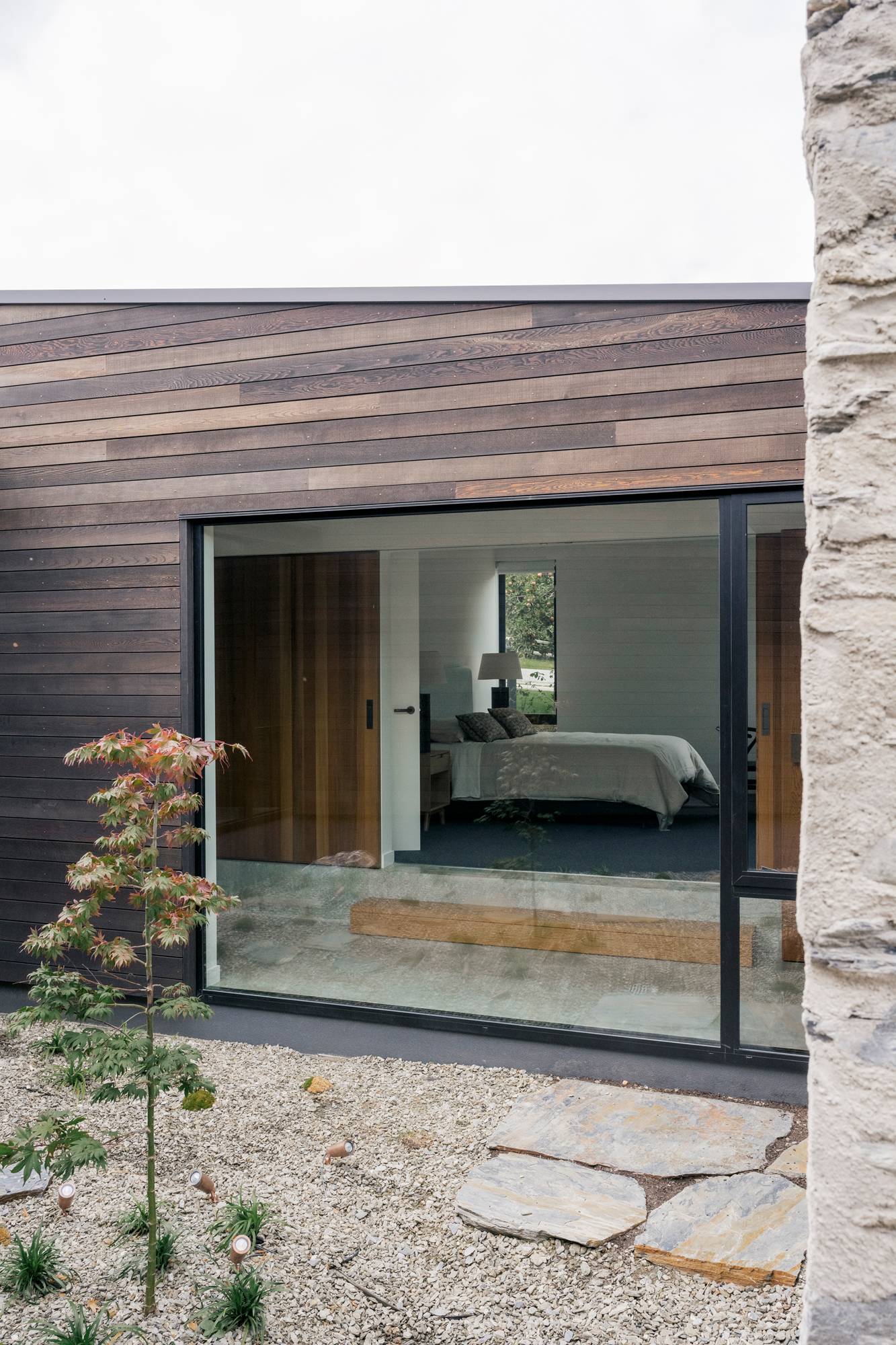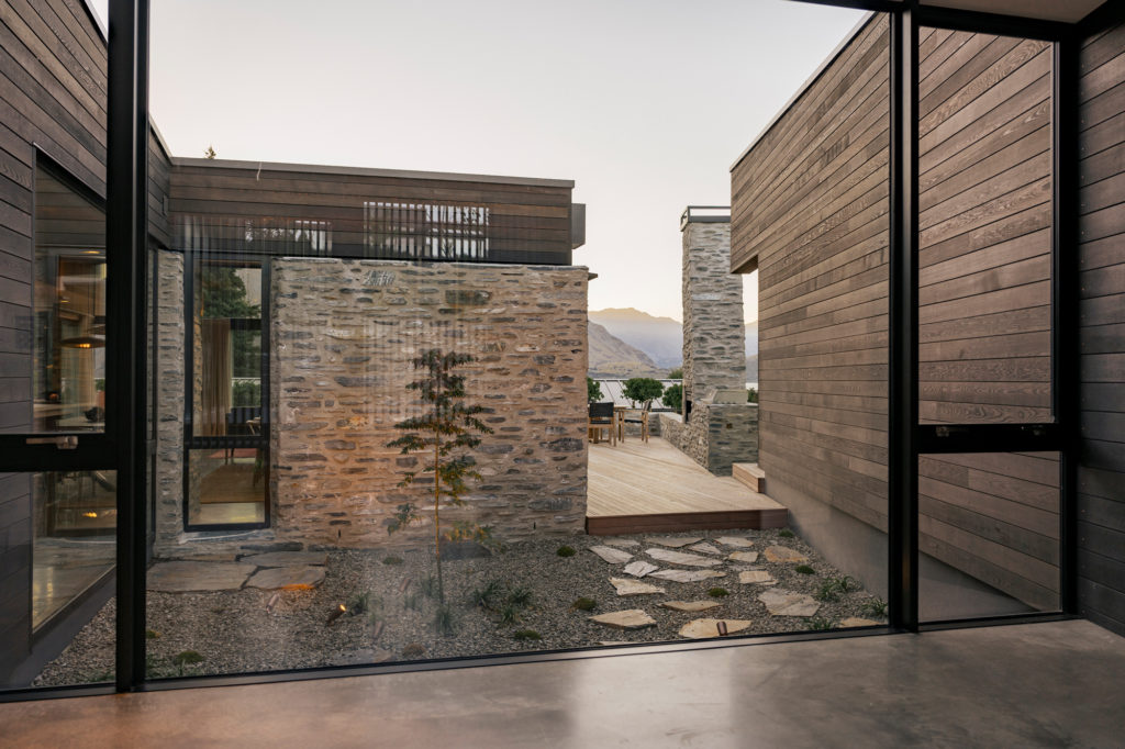 A lone Japanese maple defines the seasons in this Wanaka Home. It sits in an intimate courtyard, surrounded by gently sloping rooftops that reach out to the peaks beyond.