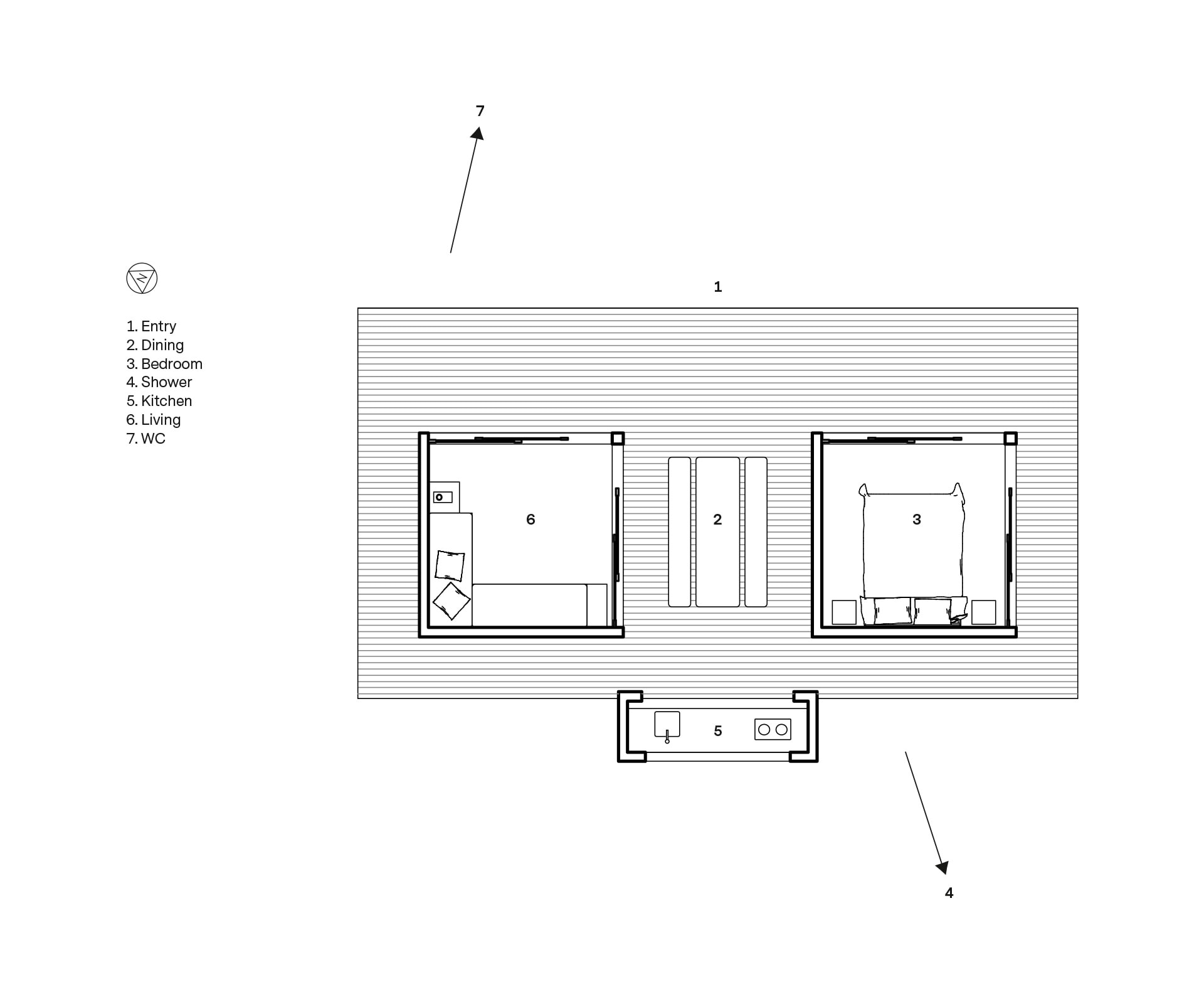 One cabin for sleeping, one cabin for resting and a kitchen that’s open to the elements. This holiday home is simple living at its finest