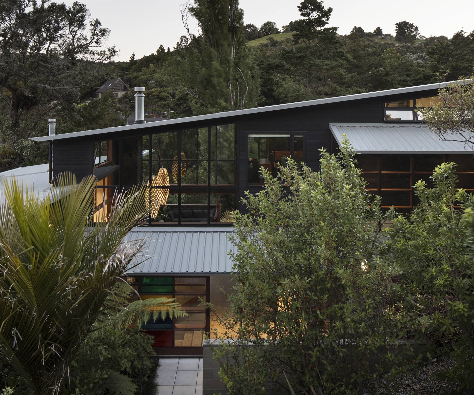 In the 1940s, Ray McGreal had a bach built and a tennis court laid on land at Mahurangi West. As the story goes, the builder placed them the wrong way around, so the bach went low down the slope, and the tennis court ended up with the sun and view. Sixty-odd years later, Pat de Pont of SGA Architects designed a new house on the site for his brother Michael and sister-in-law Karena, Ray’s daughter.