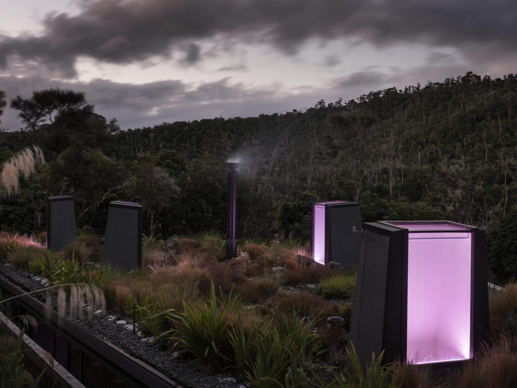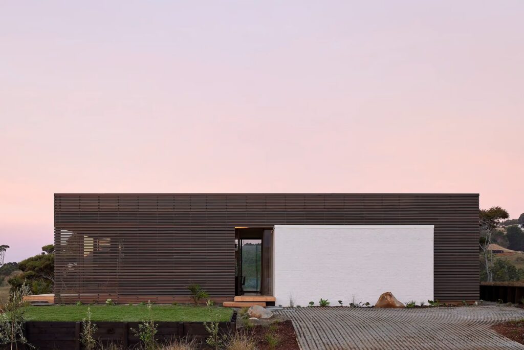 Architecture and landscape elements are curated consciously to embed this home in its exposed location, creating pockets of shelter with view shafts piercing the structure allowing occupants to connect with the outdoors throughout the year. This special site with panoramic coastal views towards Te Kohuroa (Matheson Bay) and quintessential rural outlook to Matakana Hill demanded […]