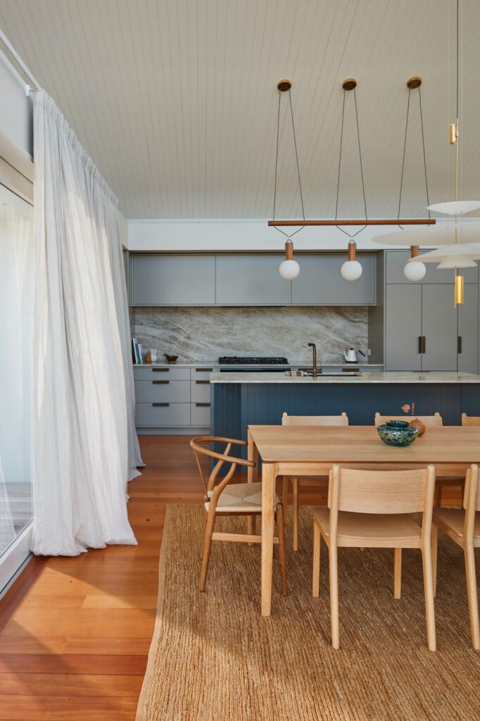 The clients’ brief was for a timeless, classic home that sits quietly among the neighbouring cribs. Their love of the mid-century style drove the use of simple materials—creating a warm, character-filled space. Simple and unassuming from the street, it is oriented to maximise views of the lake while sheltering from the wind and sun. The […]
