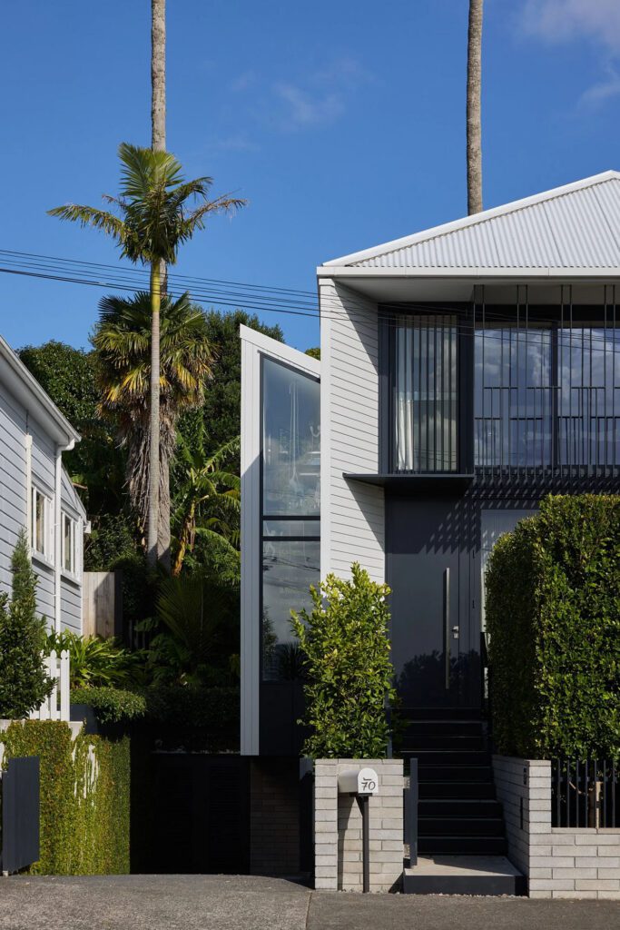 The Ponsonby house is a new home built on a small site within an inner-city suburb, where council heritage protection zoning both protects existing older dwellings and ensures new buildings are sympathetic to the established character. The clients were a young couple with a particular requirement for a generous garage and workshop space for working […]
