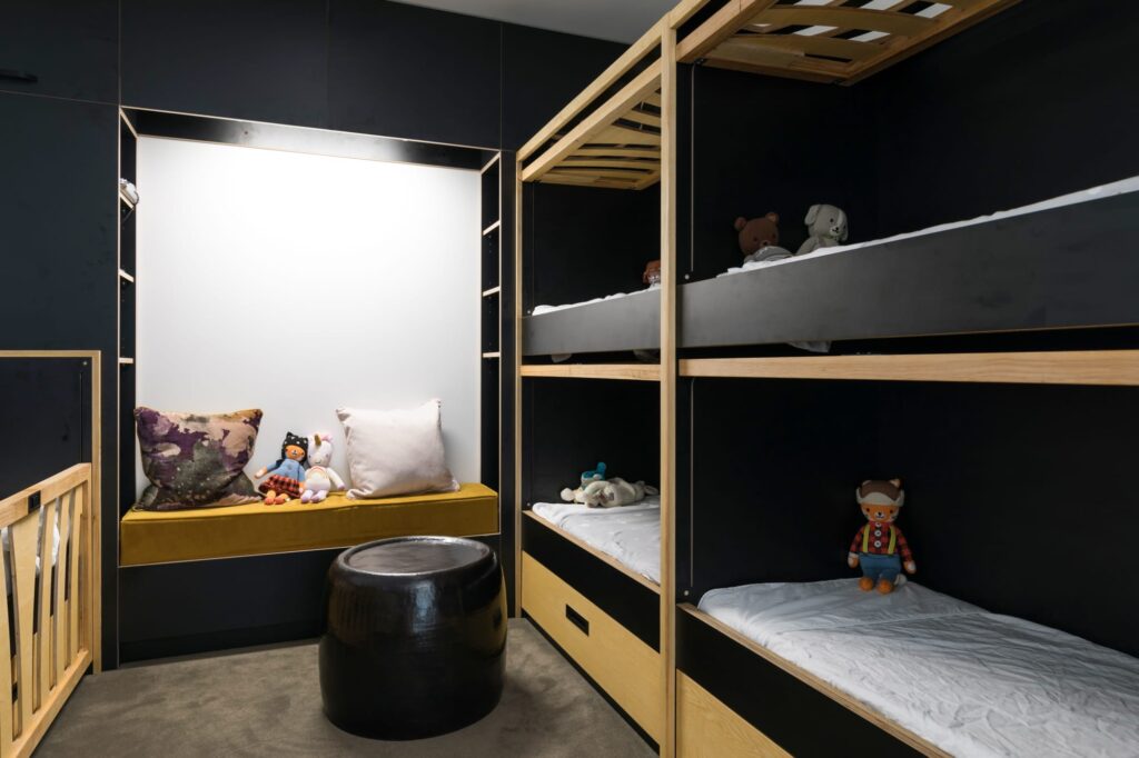 This contemporary duplex townhouse designed by Hulena Architects is the first home for a talented young musician who loves to cook. Spread over three floors, the lower ground is dedicated to a moody music studio where the necessary acoustic levels have been achieved through ceiling panels, wallpaper, floor rugs and velvet curtains and upholstery. On […]