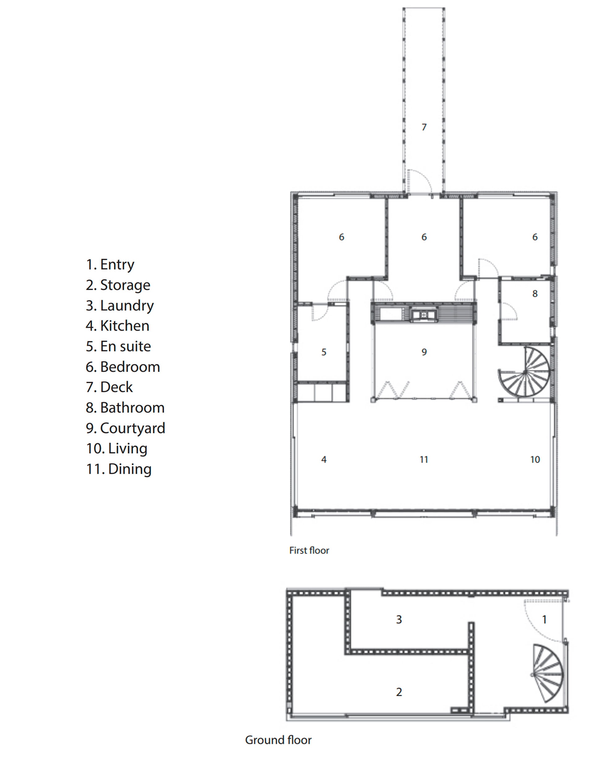 A steel spiral staircase leads to the second level and sea and tree-top views. “Essentially, all the good stuff was in the upper level. With the house pushed as high as possible into the canopy, you get a view of the ocean and a tree-house feeling,” says Lance. “That not only brings in the light, but lets you engage with the canopy – and the most beautiful part of the site.”
