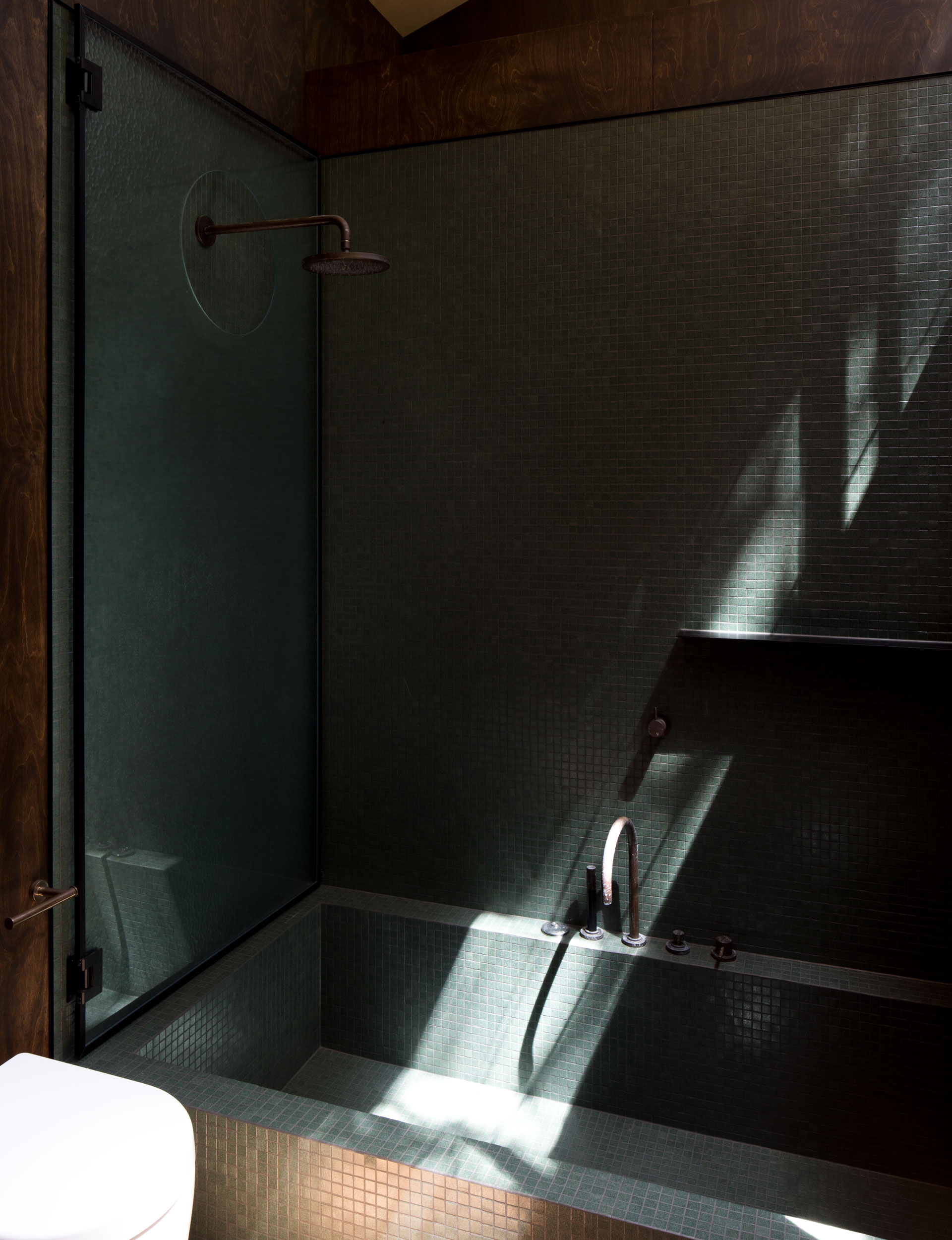 Despite retreating inwards, the house forces its occupants to engage with the landscape in the most direct ways. In winter, storms wash in off the Tasman, rain splashes the glass and trees move in the breeze, almost like kelp. When we visited on a late summer afternoon, the sun washed in, the air seemed soaked with salt and the house filled with a deafening cacophony of cicada song.