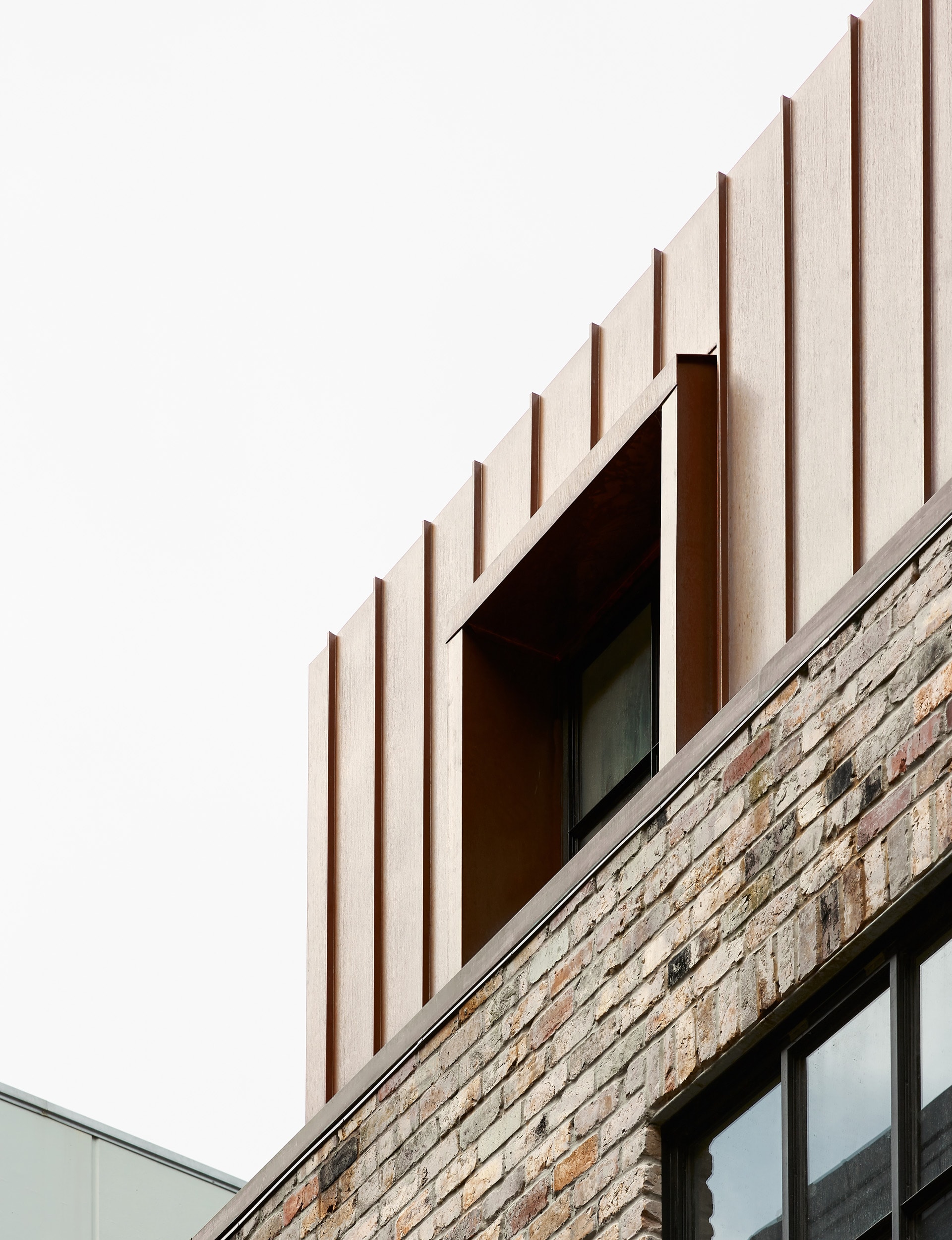 Eight lofts, each different in layout, have been hewn from the wreck of the original Model T Ford factory. With buildings on all four sides and minimal outlook, a ‘lane’ through the building provides an engaging entry. The apartments turn inward, with covered outdoor spaces and worn finishes, including gridded steel windows, brick and rubbed timber.