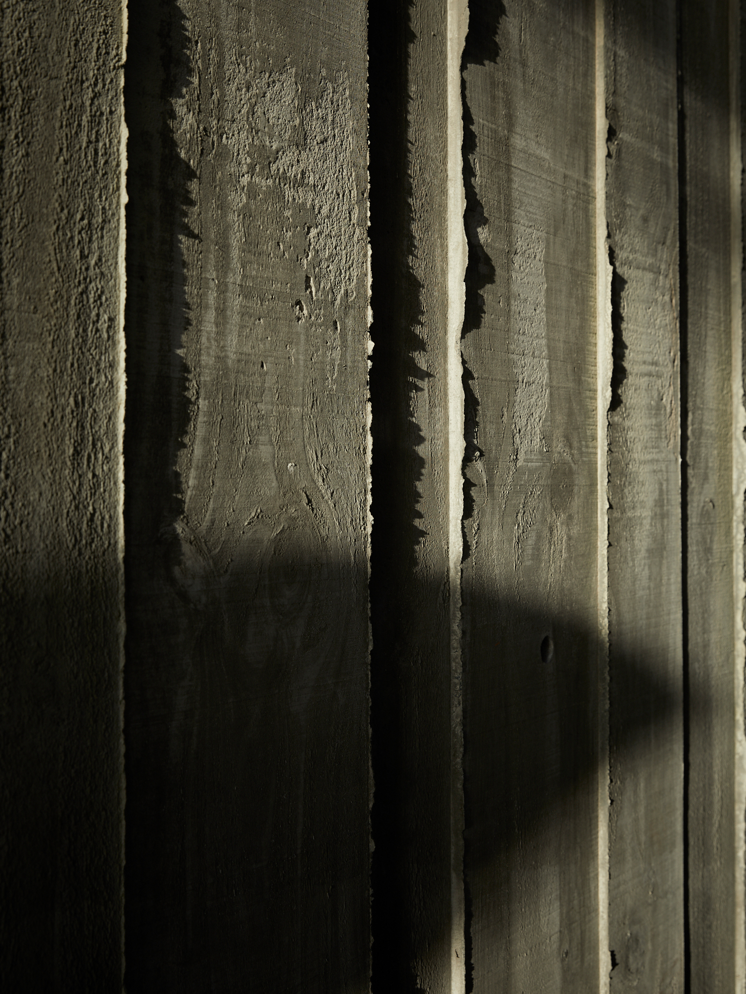 Contained within concrete walls that give privacy on both flanks, the main living zone has magnificent volume. Cast in situ, the walls were formed with planks of various widths and depths.