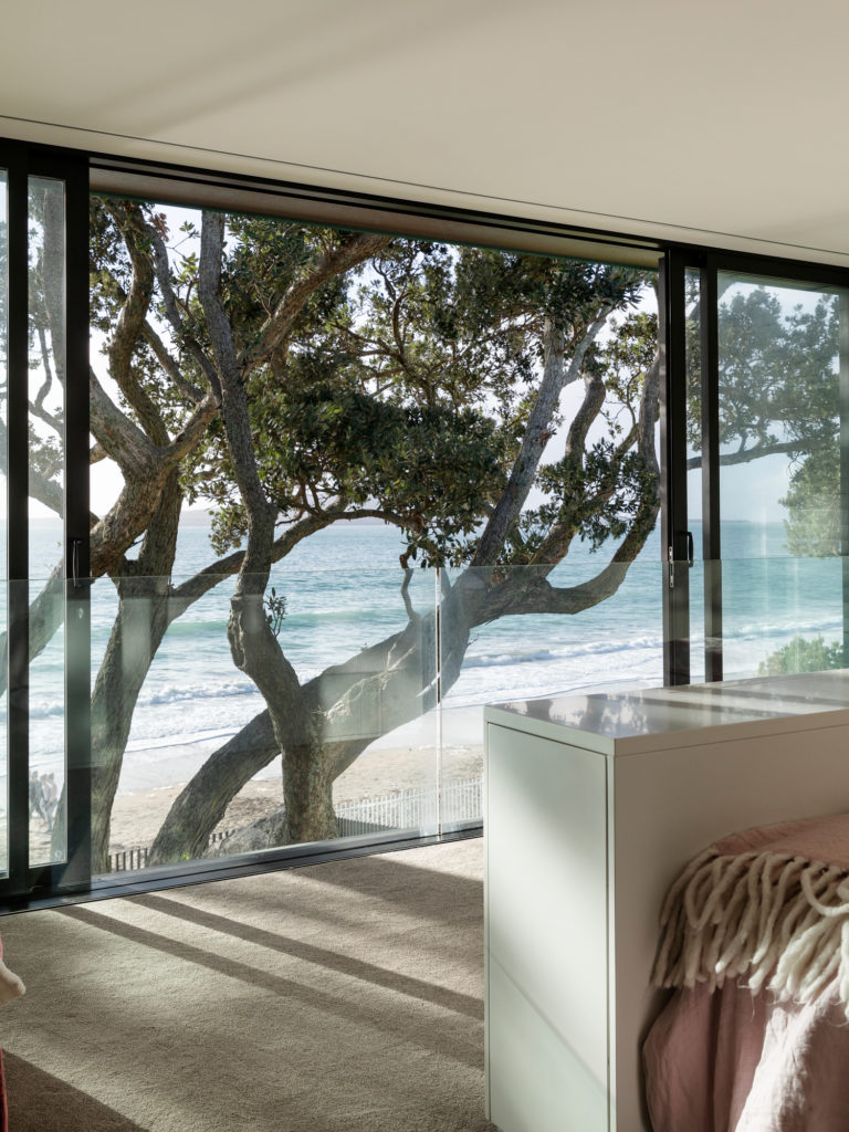Beachfront living in an urban environment has its challenges. Here in a Takapuna enclave, where the road ends at the sea, the battle for street parking is real. And the owners of this home, who, on one of their own beach promenades, spotted a ‘for sale’ sign on the grassy bank that slopes down to the sand, were quite rightly hesitant about the fishbowl effect. As it transpires, that perception and the reality differed. A daily cavalcade of humanity is critical to the essence of living here.