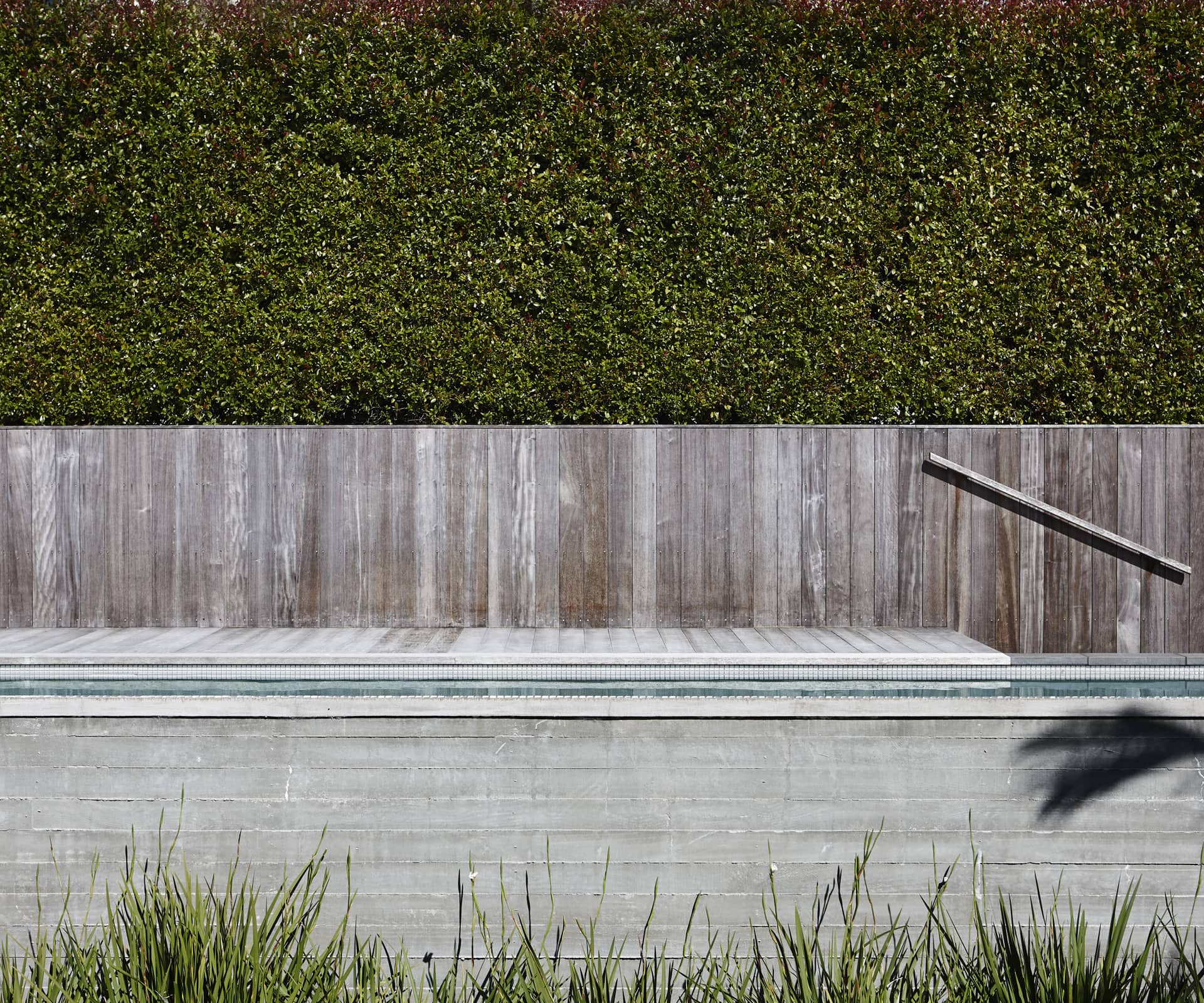 We decided to use the pool as a device to visually connect the house with the garage and simultaneously improve their functional relationship. The pool was designed 1.2 metres above the garden level, to directly connect it to the existing house, provide for pool fencing laws and give it physical presence in the garden.