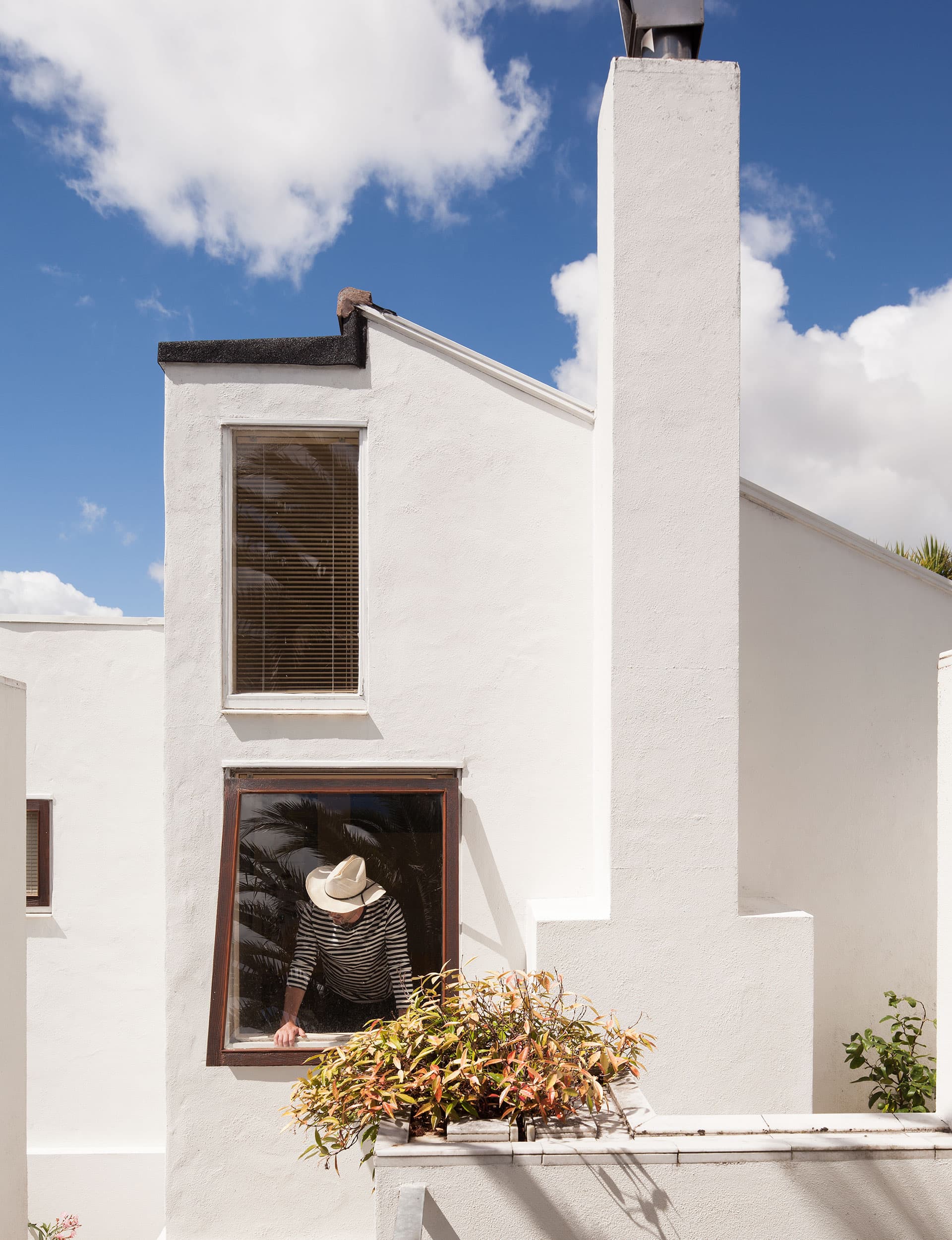 The home of Ross and Chris Jenner bares little resemblance to a New Zealand house with its white plaster forms and layered interior spaces. Ross and Chris found the steep bank of a site in Remuera in the early 80s. “When I first looked at it I wondered how the hell you could even put one house on it, let alone two,” says Ross, an academic at the University of Auckland’s architecture school.