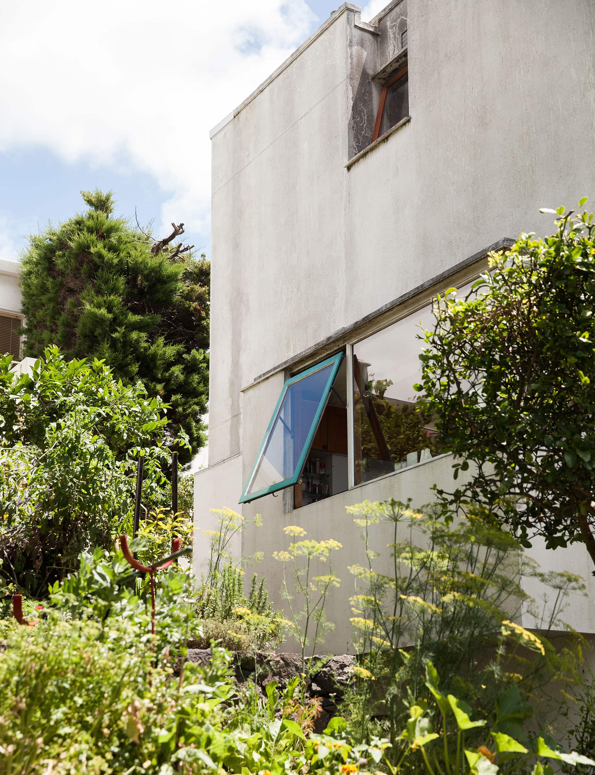 Jenner’s mother was in a wheelchair, which led to him designing a house for his parents on one level at the top of the site. Jenner then had to keep the footprint of his own house as tight as possible, which meant digging down into the site to make room for three storeys of house and a small, sheltered courtyard with a pond at one end.