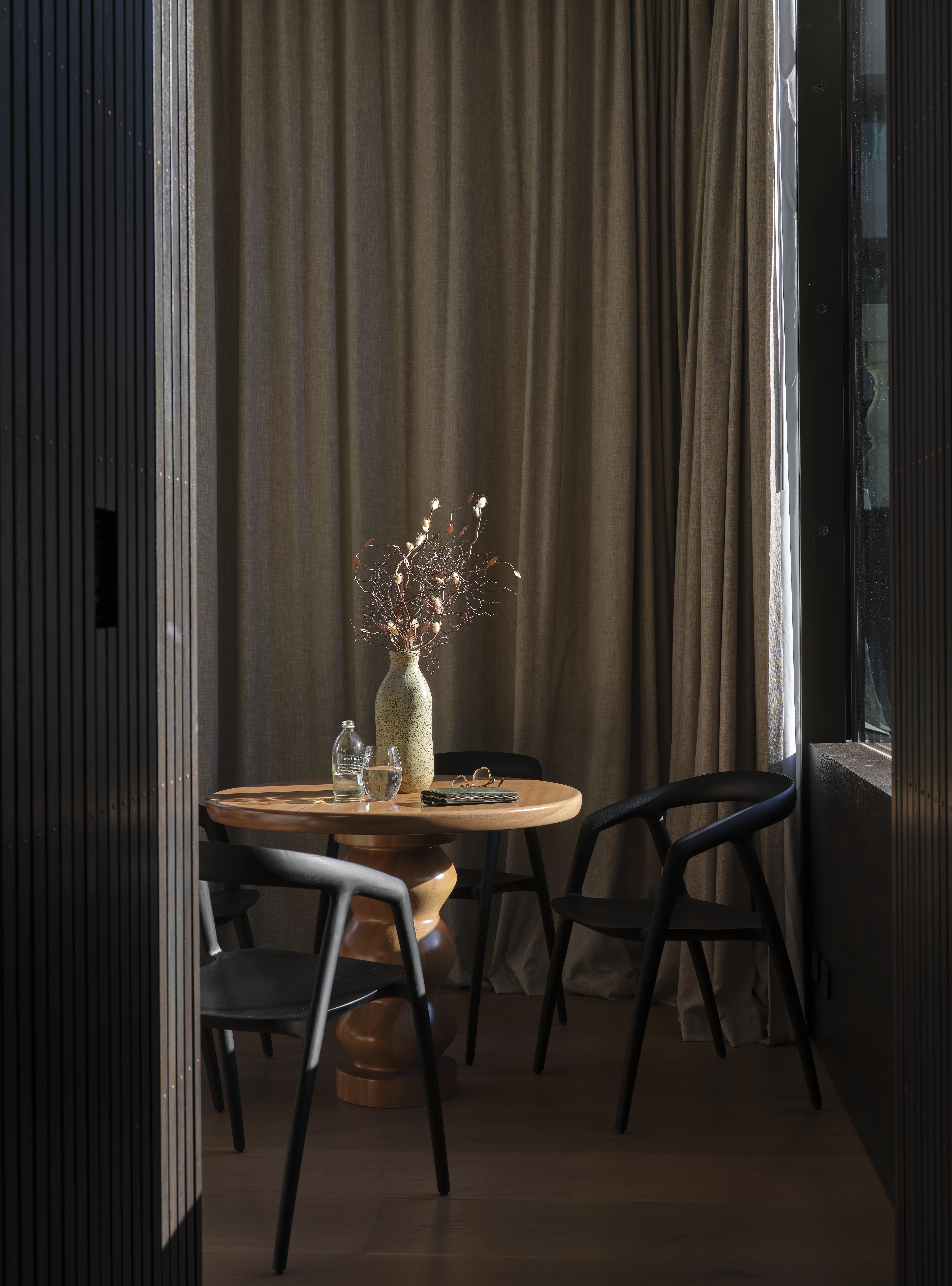 The lobby itself is a careful symphony of materials that emulate and develop, in varying degrees, some of Cheshire’s hospitality DNA: Tara Iti clubhouse’s neutral tones, Pilkingtons’ curated excess, Tantalus Estate with its chandeliers and twigs.