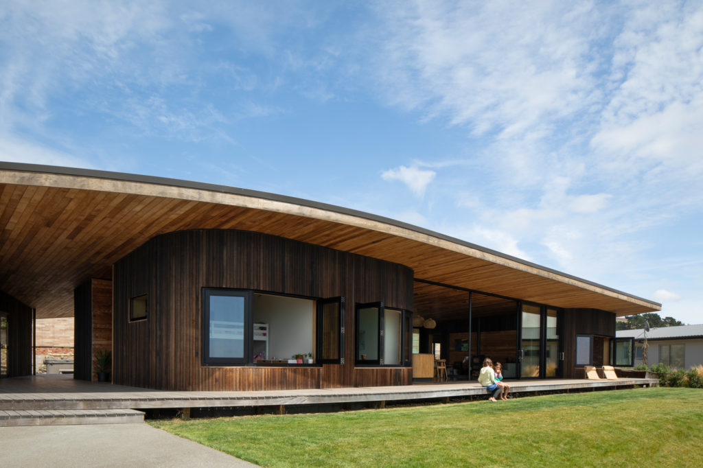 Sarina Powrie found the north-facing site for their new home while walking her two girls — now 9 and 11 — in their buggy around the Port Hills, Canterbury. The hills lie between the city of Christchurch and its port at Lyttelton.