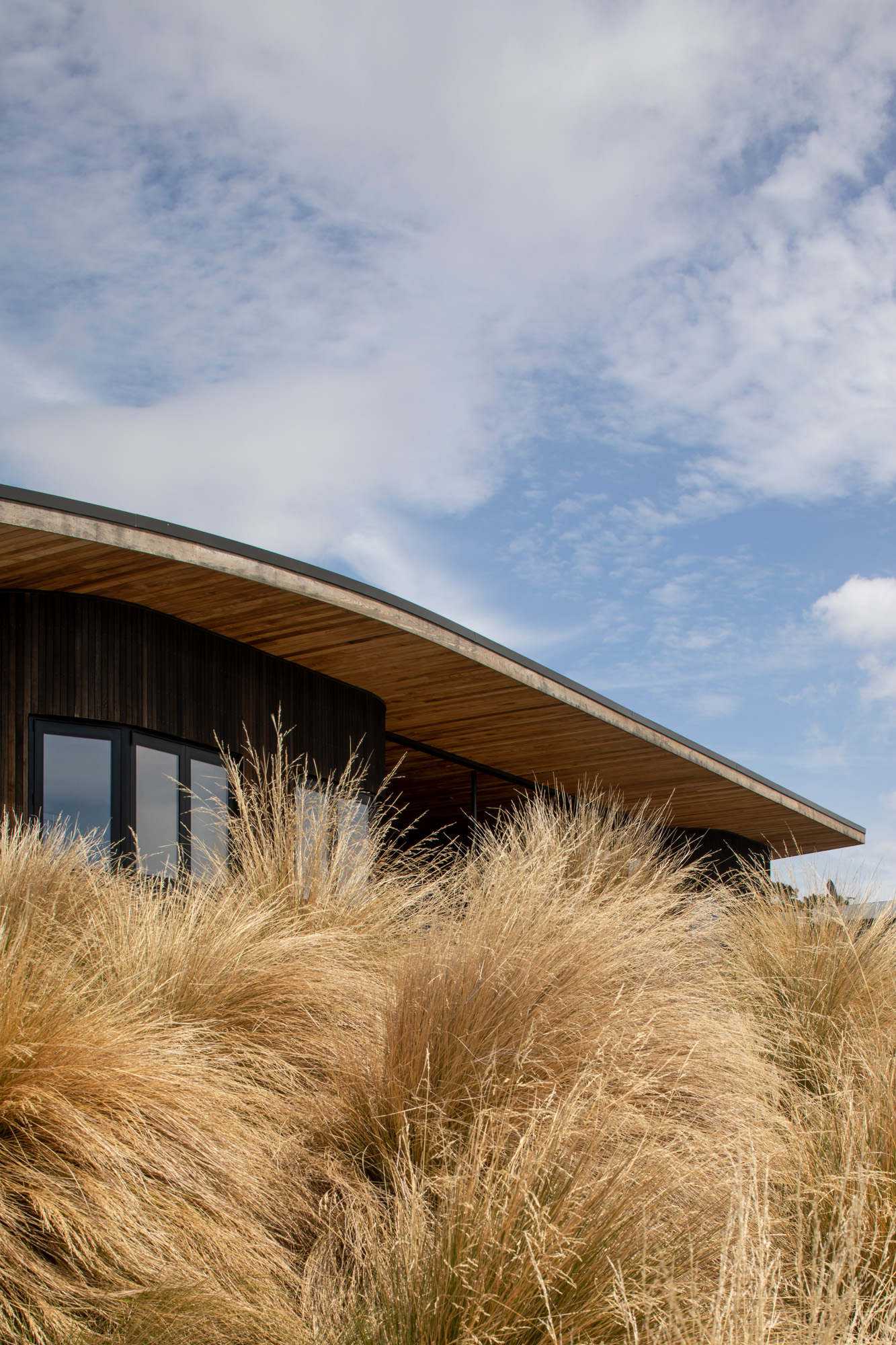 He explains that the environment deeply inspired the design. “The climatic elements were really strong — the hills up behind us have a really strong contextual palette, with the native grass and the rock formations through there and the Pacific Ocean. So we used that as a basis to drive the material palette — texture and colour.”