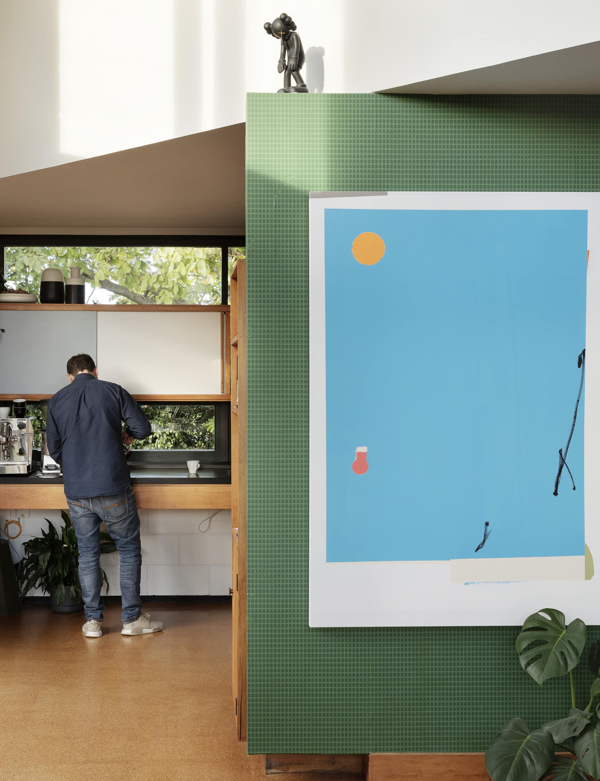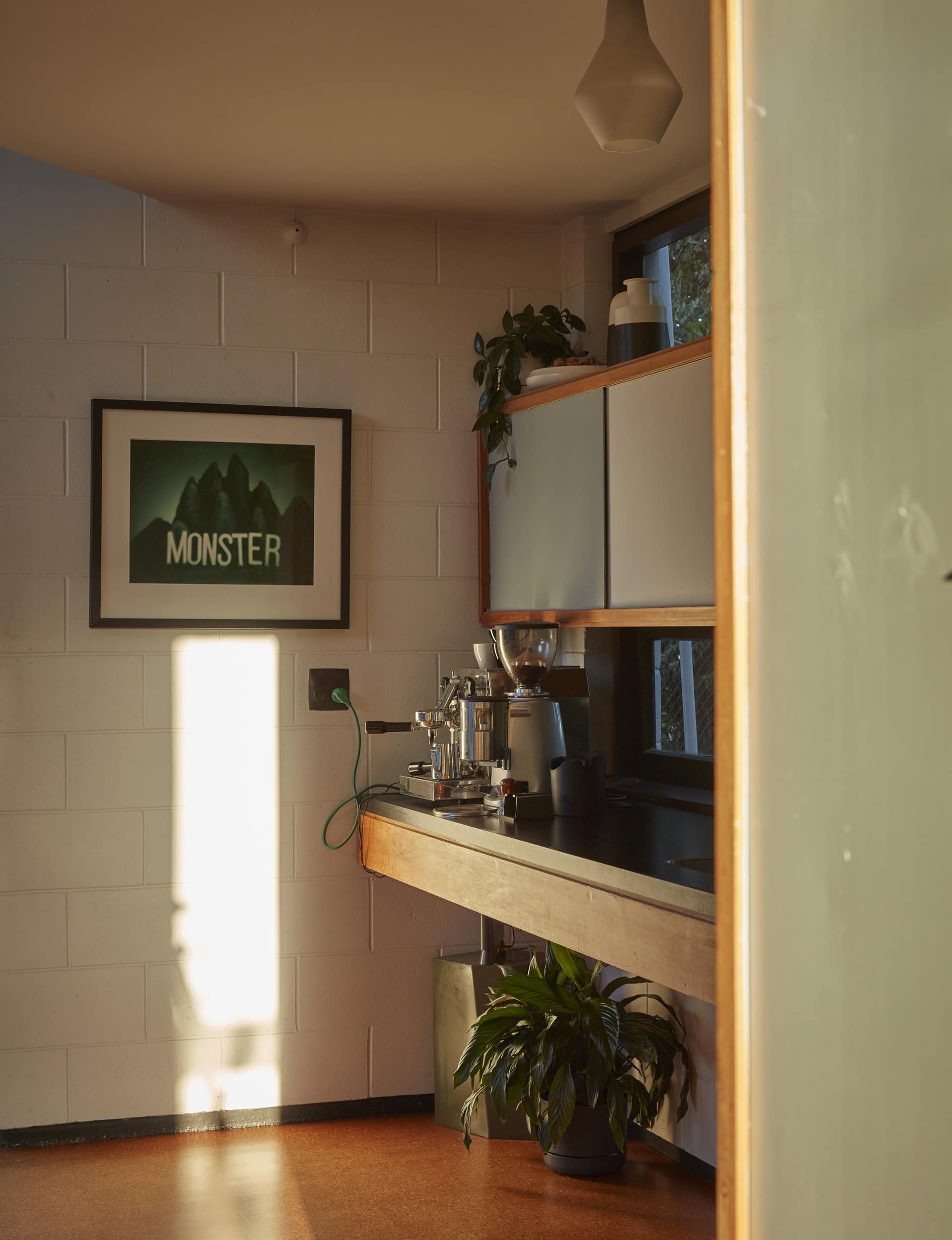 PJ— The same features that drew us to the architecture were ones we had to learn to live with. The combination of concrete, cork and large amounts of single glazing meant the spaces were quite hard. The skillion roof and exposed concrete block meant there weren’t too many opportunities to add insulation. The flooring on the mezzanine was degraded in parts, so we lifted the original particle board and added acoustic batts, new floor-mounted powerpoints and re-carpeted with sisal carpet. This softened the space aesthetically and acoustically, reducing noise transfer from the mezzanine.