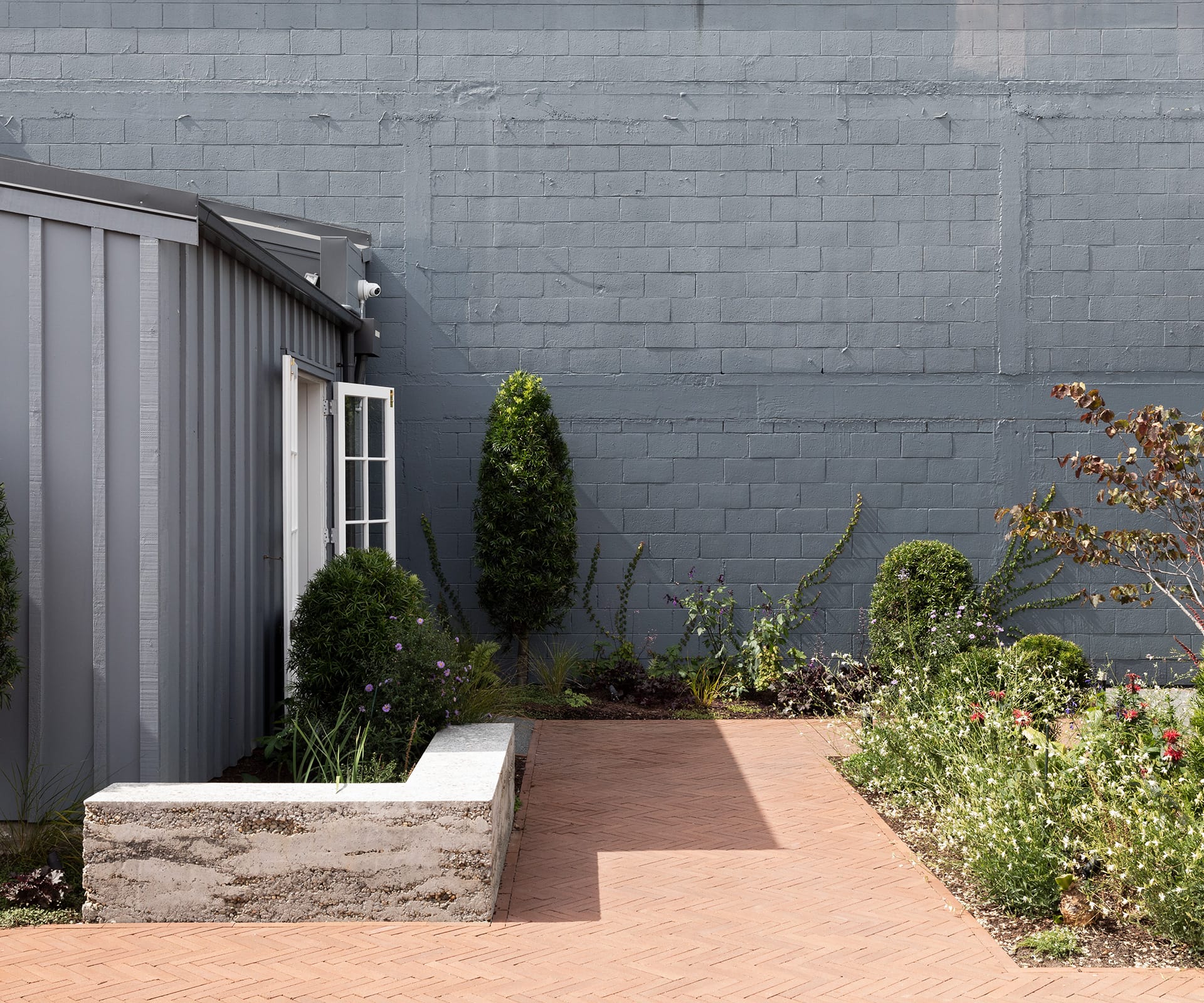 In between the two buildings is a courtyard designed by Lockhart’s brother Jared – an oasis of natives mixed with annuals, among raw poured-concrete benches. It brings a sense of calm to a rather special corner of Ponsonby. “That’s where we see the value for the brand,” says Bowden. “Adding to the life of the site is really important for us.”