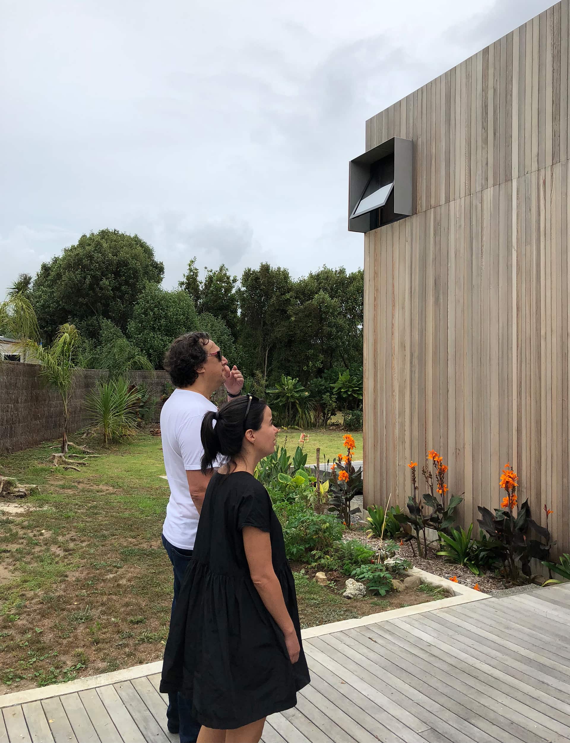 A short stroll away, the ‘Pinwheel’ house by Stuart Gardyne presented a very different – though no less appealing – sort of experience. Down a long driveway, the two-storey house is crisp and urbane, with planes and shields of aluminium and cedar.