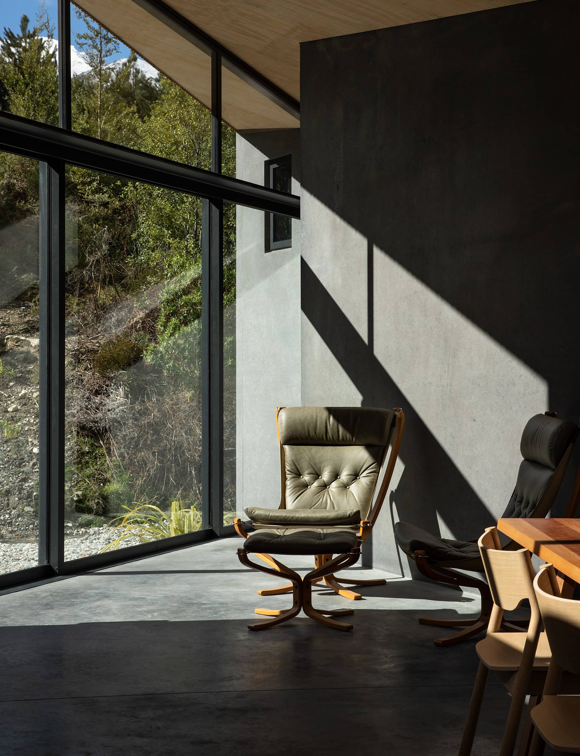 Traditional bivouacs motivated this home’s design but it was the path of the winter sun, plus the spectacular mountain views that dictated the home’s angles