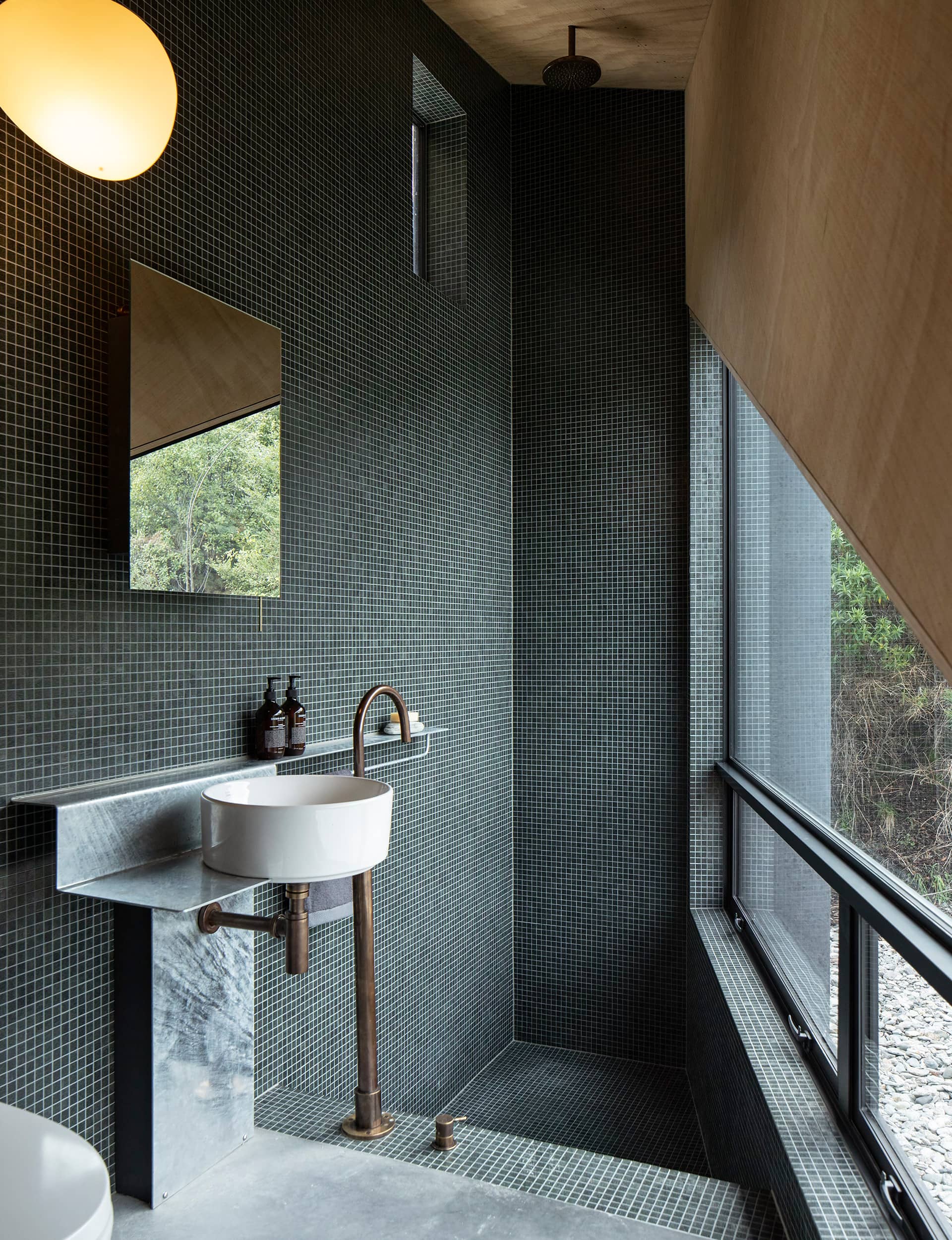 Due to planning restrictions, we were only allowed to use schist, cedar, render and glass. The roof also had to be metal and a certain colour. It didn’t necessarily impact the design, it was just another parameter to work within. The key element was convincing the planners that coloured concrete was no different than a coloured render.