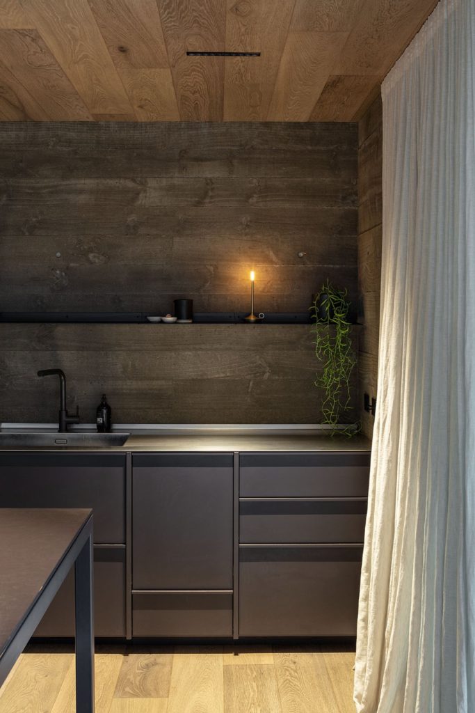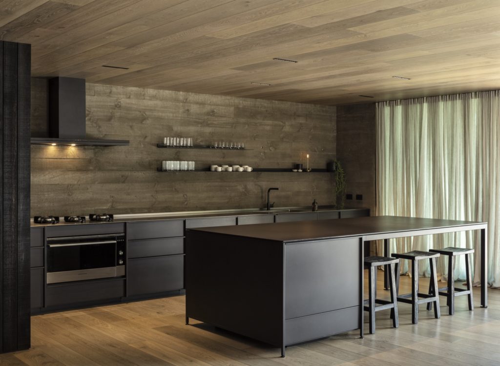 “The brief was quite loose. Both architect and clients wanted it to be moody, capturing the lake house and bunker feel. The client wanted to ensure it wouldn’t be lit up in the typical way a city house is; only the light needed would be used.