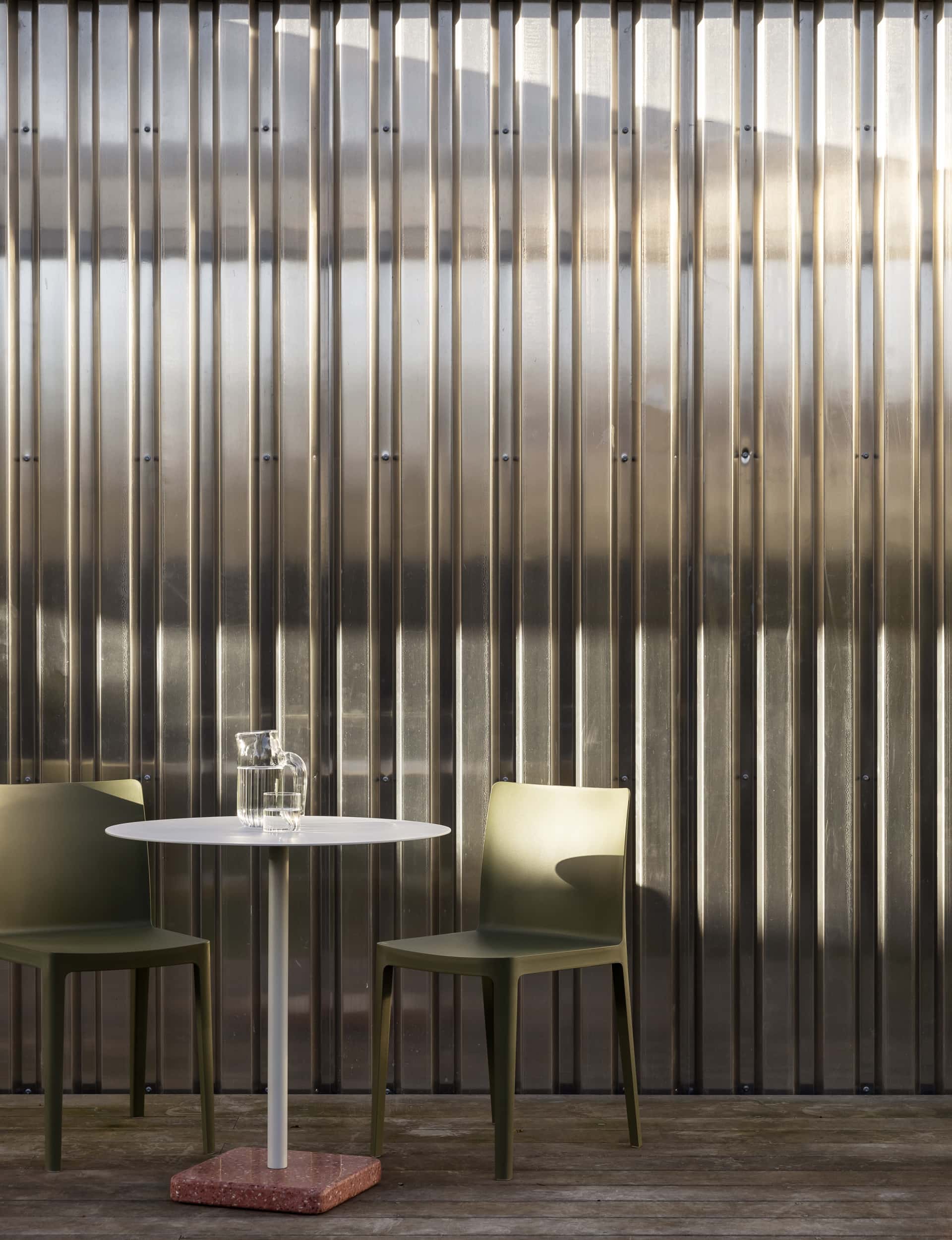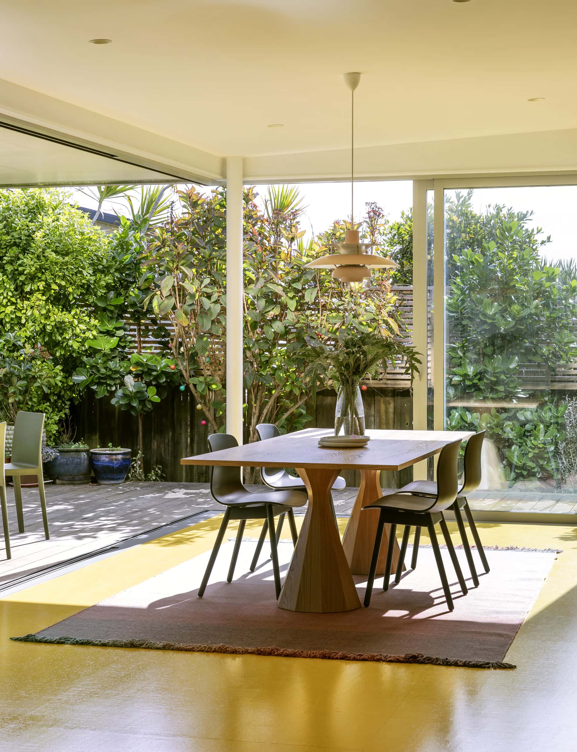 Sarosh Mulla— Because we’ve got our big projecting verandah, it doesn’t get oppressive. You get reflected light off the floor nearest the dining table, and the yellow light bouncing off the ceiling is really nice in there, but you don’t feel like you’re on the surface of the sun.