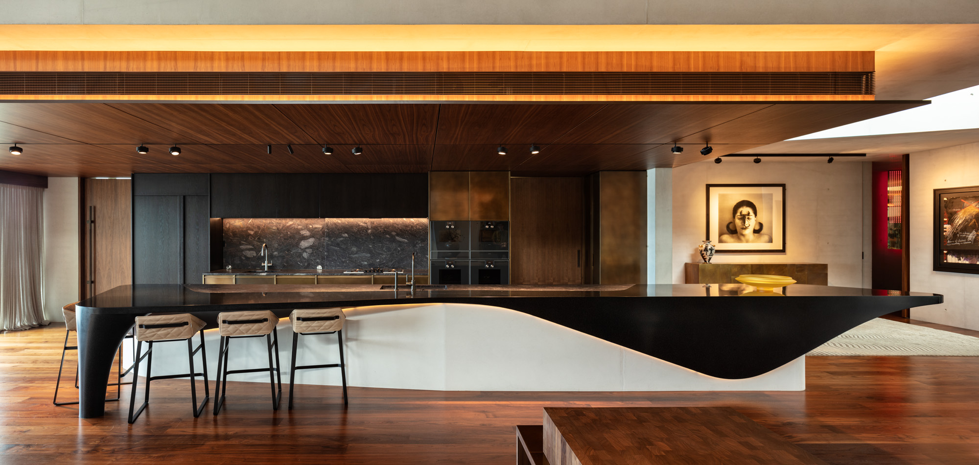 Then there’s the art. The homeowner has an impressive collection of local and international heavy hitters, but “he didn’t want to live in an art gallery; he wanted a home that had a lot of art on the walls”, says Bossley.