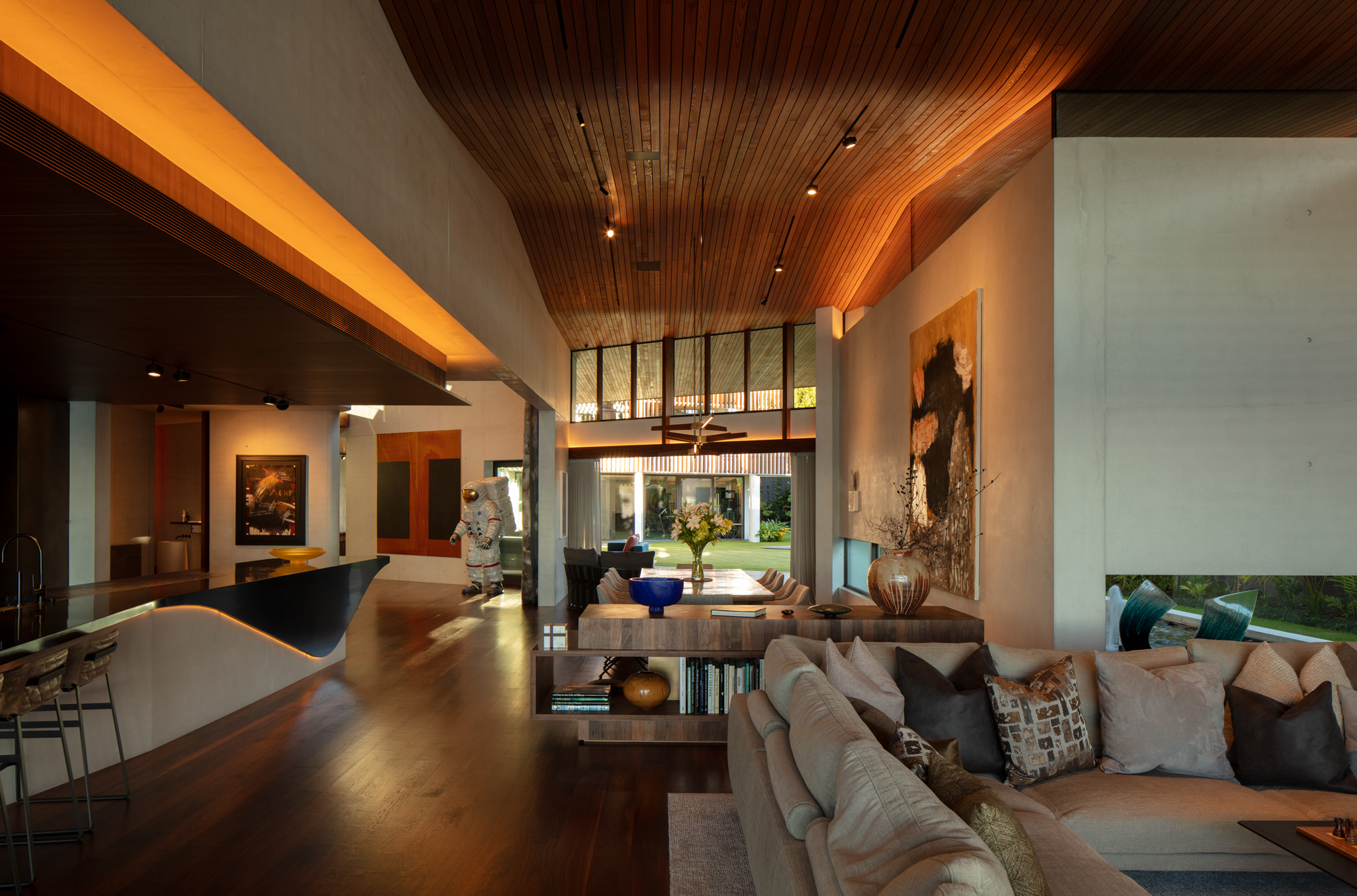 A commercial-sized, luxury home that can house one or, at times, a large extended family, and provides both theatricality in its scale and intimacy through its detailing and textures.