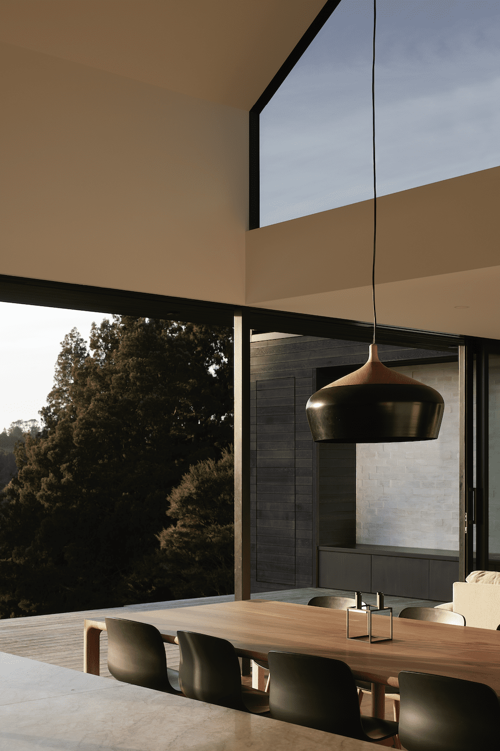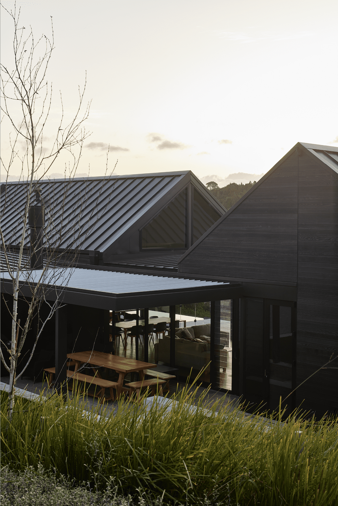 A core part of this was that there needed to be two ends to the house — one for guests and one for the couple who lives here.Jackson says they responded to this by crafting two seemingly independent — but interconnected — gabled volumes.