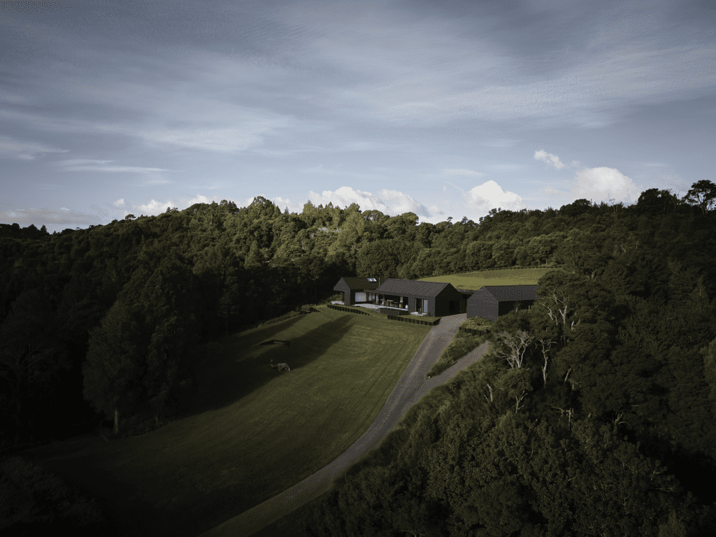 “Because their kids are now adults, the big family home didn’t really make sense any more,” says Nick Sayes of Sayes Jackson Architects. “They had already worked through a subdivision of the property to create the lot at the top of the hill, which is nurtured by the protective bush around it.”