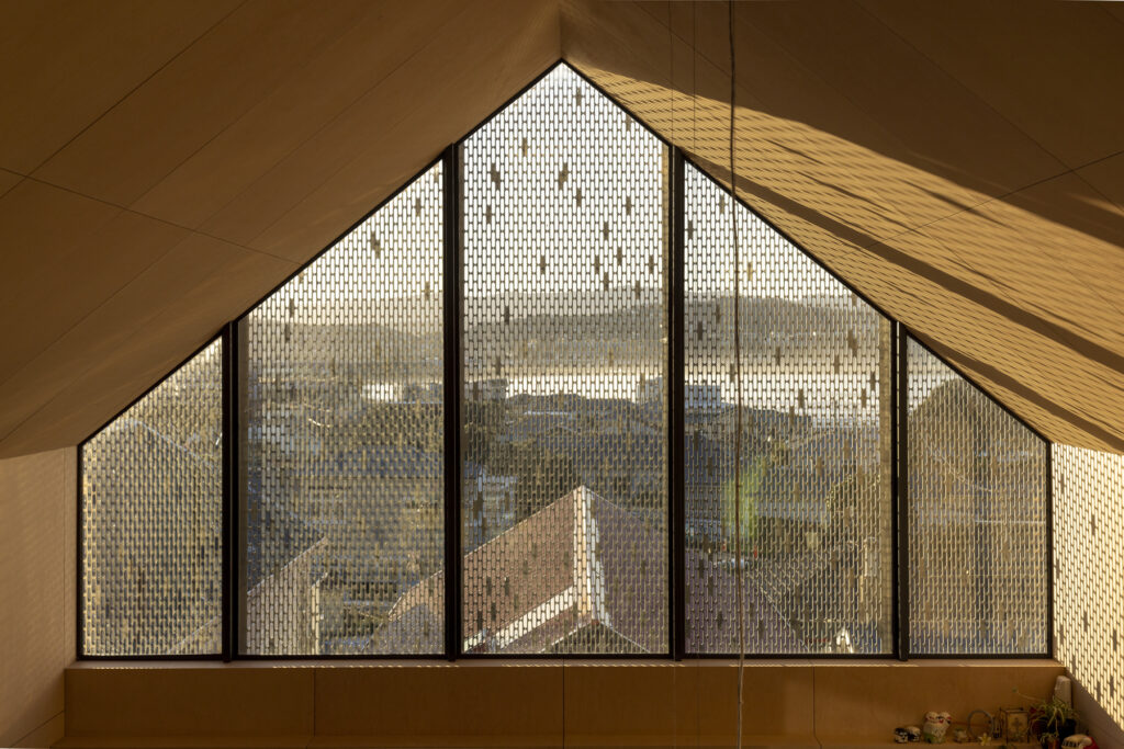 “By designing this perforated screen, we were able to create a bleeding of light from the east in this lovely dappled pattern. It was a balance because we wanted to allow the view through the screen, but also to create the appearance of a solid and volumetric form from the outside. It’s interesting, because when the light isn’t hitting it, it becomes much more transparent.”