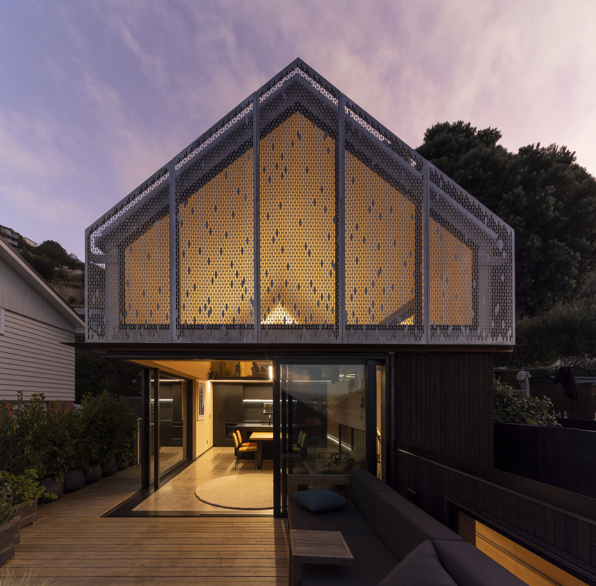 “Most of Lyall Bay is flat and has this tightly knit mix of gabled houses that continue up the hillside. It is Wellington’s best surf beach, and there’s still a really prominent surf club building,” Alain Bruner of Etch Architecture tells us.
