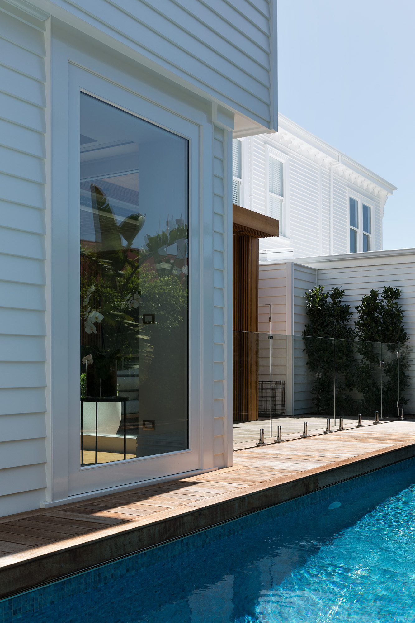 From the street, this elegant white house looks like a close cousin of its neighbours. Two peaked gables and a verandah with a bull-nosed roof give a shout-out to the surrounding villas. But all is not as it seems. Not only is this home in Freemans Bay, Auckland, brand new but, like an iceberg, only a small proportion can be seen.