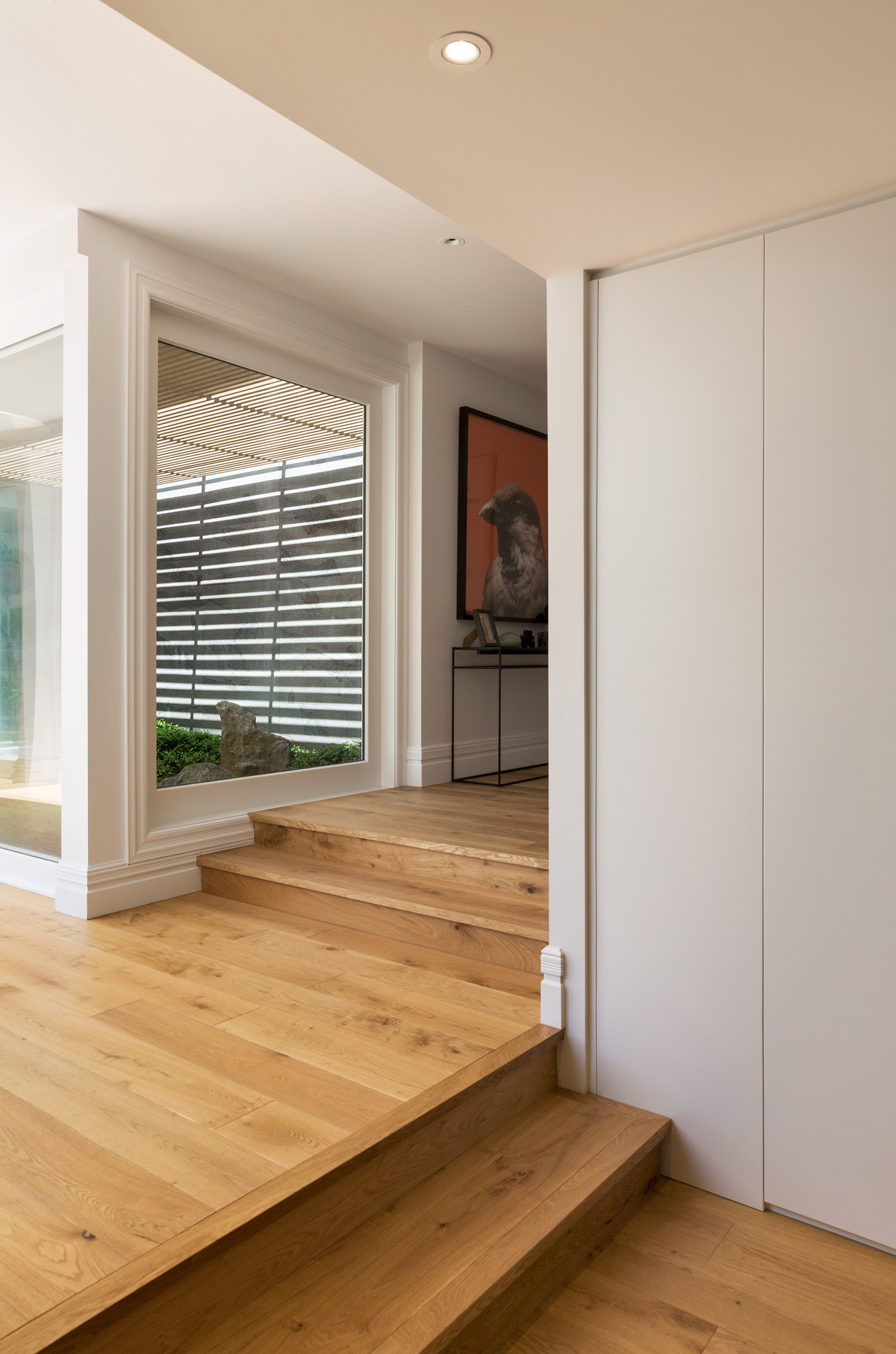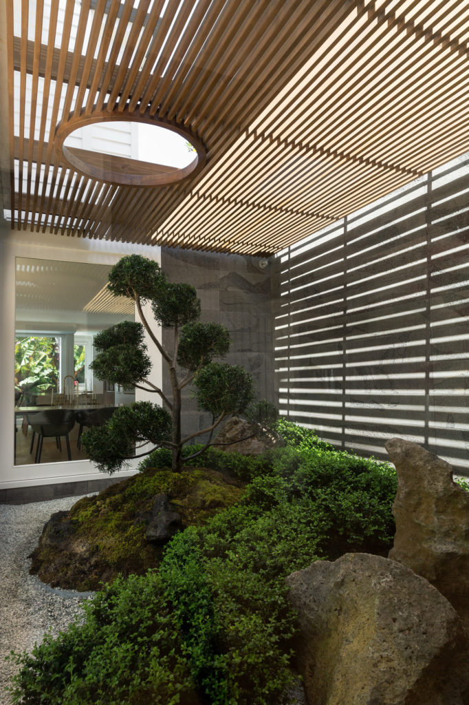 The Zen garden was a collaboration between owner Simon Dunlop, interiors consultant Chantelle Smith and Eden Landscapes. It lies to the south but receives filtered light from above
